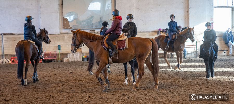 Képgalériánk a fedeles lovardában történt edzésekbe enged bepillantást. A munka befejeztével a lovasok a napsütéses, enyhe időben a kültéri lovardában, a Suti István Lovaspályán sétáltatták le lovaikat és álltak össze egy csoportképre a szervező Rózsahegyi Róbert telepvezetővel és Sós Attilával a kurzus vezetőjével.