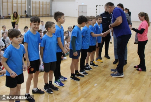 Halasi bírókkal, játékvezetővel, Szloboda Mihály koordinálása mellett Solton rendezték meg a diákolimpia játékos sportverseny vármegyei döntőjét. A megméretés egy impozáns, nekünk halasiaknak álomszerű sportcsarnokban zajlott, hét iskola részvételével. Városunkat a Központi Református Általános Iskola képviselte, nem is akárhogyan. Csehó-Kovácsné Sörös Vivien és Virág Tamás tanítványai óriási csatát vívtak a házigazda Vécsey Károly Általános Iskolával, végül a halasiak, minimális különbséggel a második helyen végeztek. Ez is továbbjutást ért az országos elődöntőbe.
