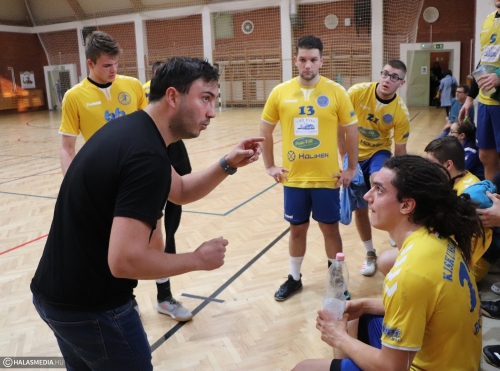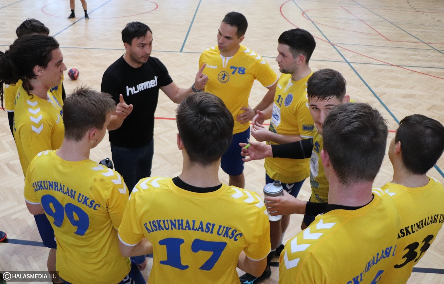 A szünet után sem sokal változott a játék képe. Az UKSC tartotta előnyét, a két kispadot leginkább a játékvezetői ítéletek foglalkoztatták. Kívülről úgy tűnt, mindkét fél kárára tévedtek a sporik. Ami viszont szembeötlő volt, hogy sok lehetőséget hibáztak a vendégek, a halasiak viszont pontosabban fejezték be a támadásaikat. A 39. percben megvolt a közte tíz (19-9), majd a tizenegy is Szabadi Attila góljával. Ekkor volt a legnagyobb különbség. Az utolsó tíz percben igyekezett a vendégcsapat csökkenteni a különbséget, ez hét gólig sikerült, Pecznyik Patrik és Haraszti Botond találatával. Kiskunhalasi UKSC - Euroscale Kecskemét 28-21 (15-8). A halasiak győzelemmel búcsúztak az ősi idényben a hazai pályától. A meccs legeredményesebb góllövője Rencsár Levente 9 illetve Haraszti Botond ugyancsak 9 találattal volt.