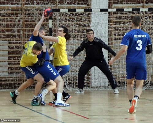 Rangadót játszott a Kiskunhalasi UKSC a megyei férfi kézilabda-bajnokság hetedik fordulójában. Az Euroscale Kecskemét volt az ellenfél, amely a találkozó előtt csak egy ponttal gyűjtött kevesebbet, mint az UKSC és a tabella második helyén állt a listavezető halasiak mögött. A Bibó István Gimnázium Horváth István Sportcsarnokában megrendezett mérkőzést a vendége kezdték jobban. Mire feleszméltünk már a hetedik percben jártunk és 3-0-ra az ellenfél vezetett. Az első hazai gólt Rencsár Levente mellé jegyezhettük fel, de a 14. percben még mindig három gól volt a kecskeméti előny (2-5). Ezután jött a fordulat: Rencsár Levente, Józsa Ádám és Virág Tamás két perc alatt egyenlített. Jött egy kecskeméti időkérés, de ez nekünk jött jobban. Modok Benő edző azt mondta: fiúk, jobbak vagytok...