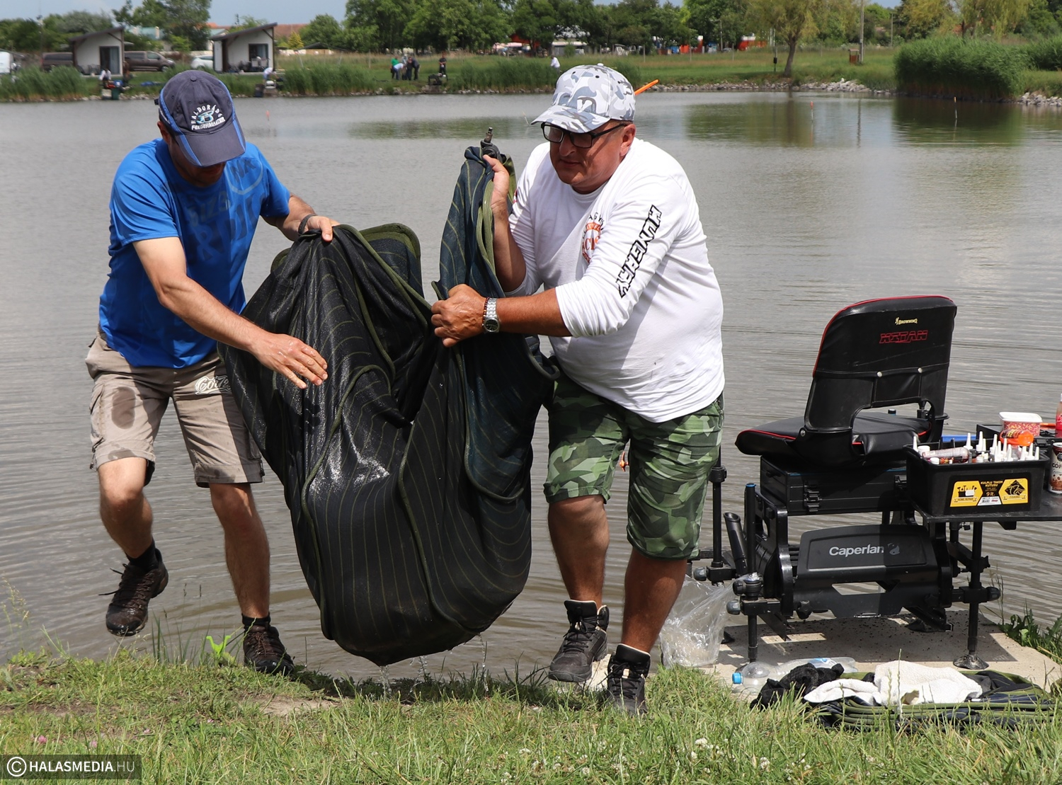 Szombaton a már-már kánikulát idéző meleg tette próbára a versenyzőket, de a kapásokra nem lehetett panasz. A három nap kétszer is fogási pályacsúcs született, ami azt jelenti, hogy megközhelítette a másfél tonnát a tóból kiemelt pikkelyesen tömege. A szabály szerint a nagyobb halakat rögtön a mérlegelés után visszaengedték a vízbe, a többit pedig a verseny végén. A magyar horgászsport egyik fellegváraként emlegette Kiskunhalast Ambrus Tibor, a MOHOSZ versenysport irodájának vezetője. A legjobb 14 versenyző - köztük volt Döme Gábor is - bekerült az országos döntőbe. További részletek a kedd esti híradóban.