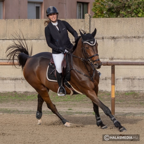 A Kiskunhalasi LTSE fiatal 2. helyezett lovasát is szóra bírtuk, aki három hete az ifjúsági regionális döntőt nyerte a füves arénában. Jó formában vagyunk Bognár Obstreicher-rel – kezdte Frányó Csenge. A regionális döntő után egy hét pihenő következett, aztán heti hármakat edzettünk. Maradt a jó forma. Az összevetésben előttem startoló edzőm, Füzér Gábor pályája sokat segített és kintről is biztattak. Örülök a győzelemnek és készülünk tovább a fedettpályás szezonra – zárta gondolatait Csenge.