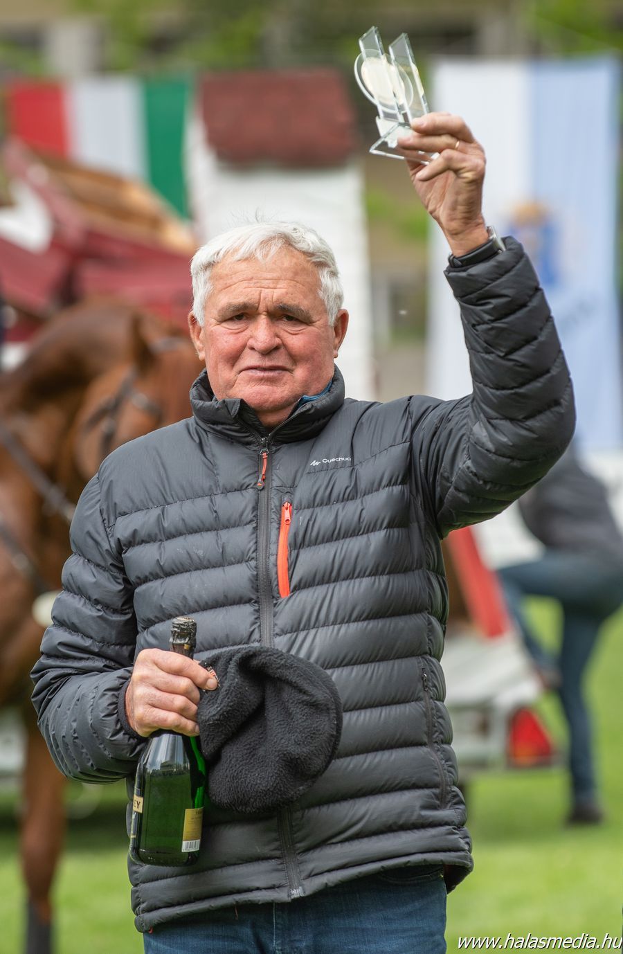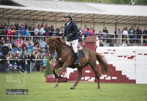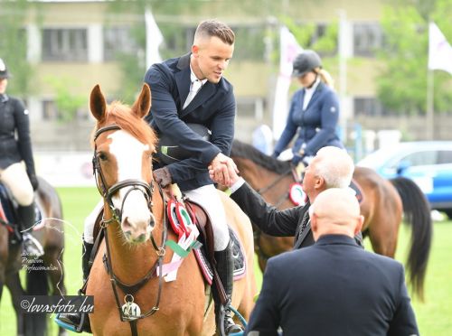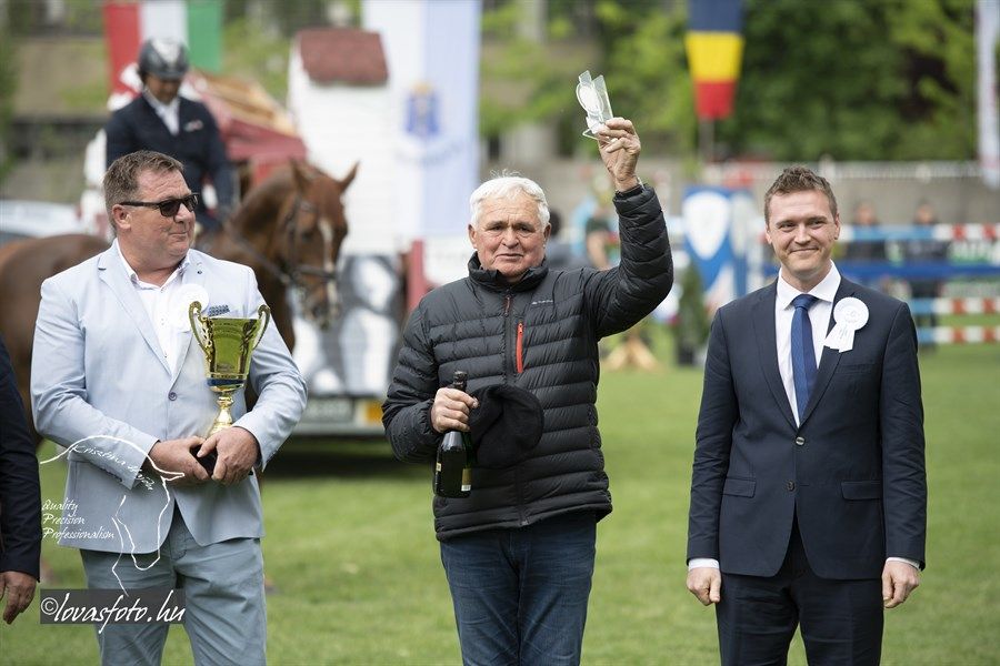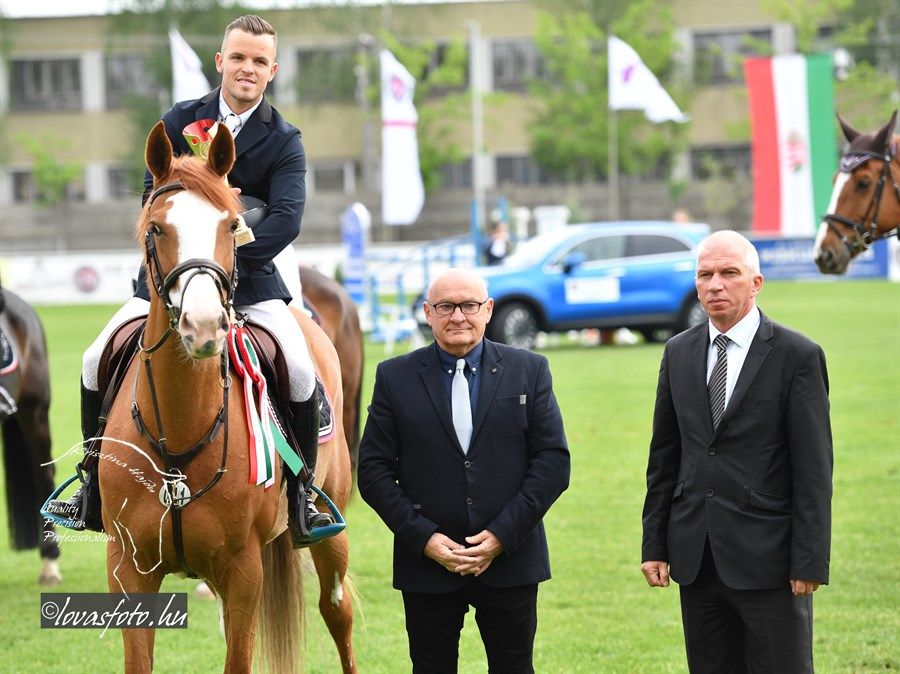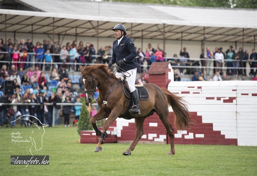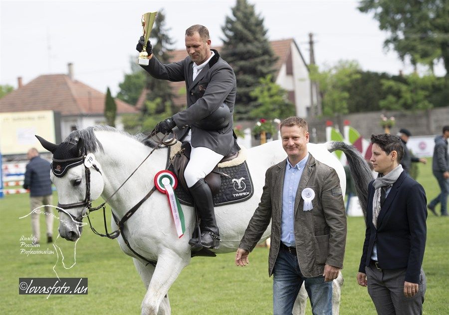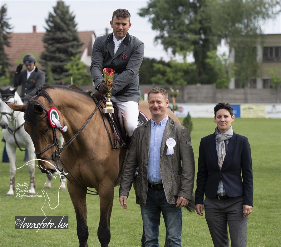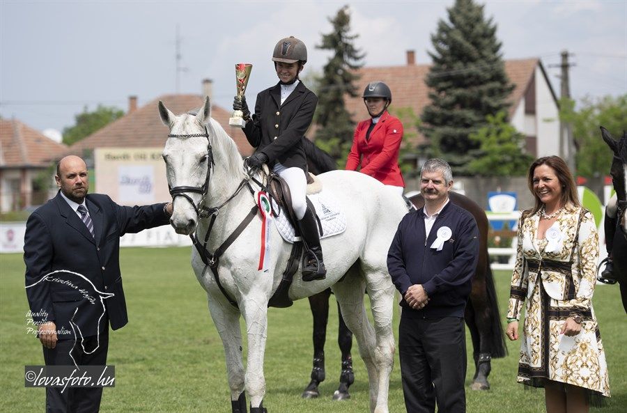 Először ifj. Máté István Chacrinue-val lovagolt a nézőkkel zsúfolásig megtelt aréna zöld gyepére. Gyors pályát mentek, de verőhibát vétettek. A második összevető Mráz Tamás Cariba Dammal hibátlan és gyors pályát fejezett be. Az utolsóként érkező, hatvankét esztendős Rezgő Zoltán elképesztő higgadtsággal, összeszedetten és a leggyorsabb tempóban lovagolva segítette végig K-Waimea nevű lovát a pályán, amivel megnyerték a Grand-Prixt. Rezgő Zoltánnak ez a helyzet nem volt idegen, mert 28 évvel ezelőtt, ugyanezen a pályán, szintén a május 1-i versenyen megnyerte már egyszer a nagydíjat. Legjobb halasiként Weinhardt Virágot is kiszólították az eredményhirdetéshez, aki Chiclana-val egy verőhibával végzett a 7. helyen.