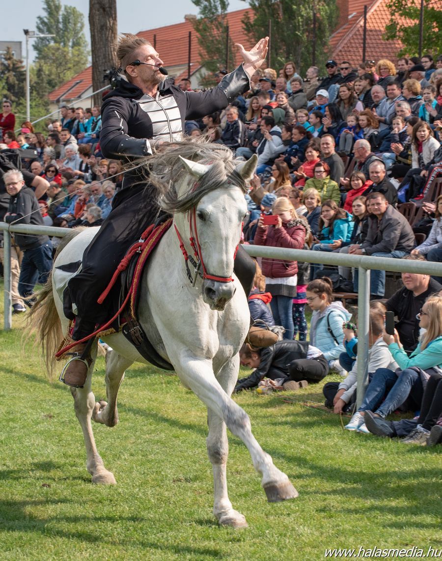 Közel kétezer néző fordult meg a CSI** 42. Kiskunhalasi Nemzetközi Díjugrató Lovasverseny harmadik verseny napján, május 1-jén. A lovasnapok klasszikus időkben szokott látogatottságához illeszkedett a Grand Prix végeredménye is. A lovassport megint bizonyította, hogy kortalan, mert az 1991-es halasi GP győztes, Rezgő Zoltán nyerte a nagydíjat izgalmas összevetésben K-Waimea (címképen) nevű lovával. A kitartásos magasugratást 190 cm-ren ifj. Szabó Gábor hozta elsőként Timpex Fényévvel.
