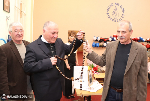 Sándor atya Halasnak adta Papp Laci dedikált boxkesztyűjét (galéria)