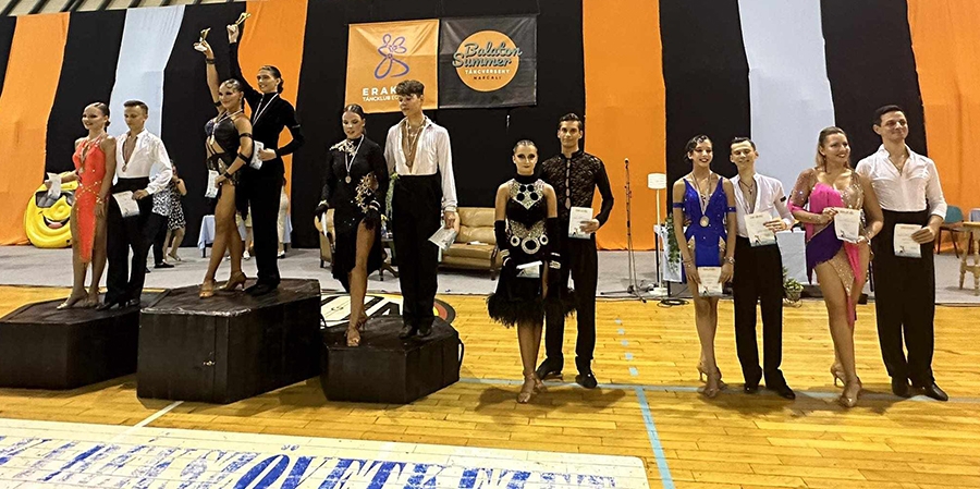 Térjünk rá a hazai a négynapos Balaton Summer fesztiválra (augusztus 8-11) – folytatta a művészeti vezető. Marcaliban a legtöbbet Dósa Dante és Juhász Anna Lola lépett parkettre, ők a 4 nap alatt 7 aranyéremmel, és 5 ezüstéremmel lettek gazdagabbak E standard junior, és D latin junior korosztályokban. A stúdiósok legeredményesebb párosa a verseny 4. napján. aranyéremmel zárták a junior I. E standard, valamint junior II. E standard kategóriákat is.
