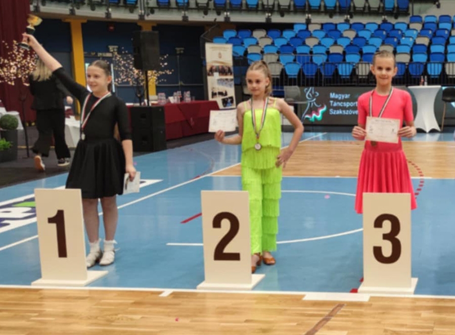 Szabadi Jázmin (címképen) kettős győzelmet aratott, az E junior 2 és az E ifjúsági kategóriákban ért el első helyezést. Ugyanezekben a számokban Ágoston Zorka az elődöntőben táncolthatott, ami nagyon szép teljesítmény. Kis Fruzsina a D junior 1 és junior 2 latin táncokban elődöntős volt, Kis Dorottya a D gyermek 2 latin táncokban harmadik, helyzést ért el, a D junior 1-es latin táncokban pedig elődöntőben szerepelt.