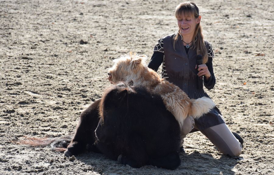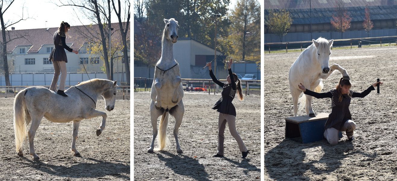 Szombati bemutatóján az idomárnő három lovával nagy fegyelmezettséget igénylő produkciókat mutatott be. Ezek között a dobogóra állás, a két lábra állás (ágaskodás), a lóra állás is szerepeltek. Mindeközben mikrofonon keresztül szóban adta át, hogy mit miért és hogyan tesz úgy, hogy azt lovai elfogadják.