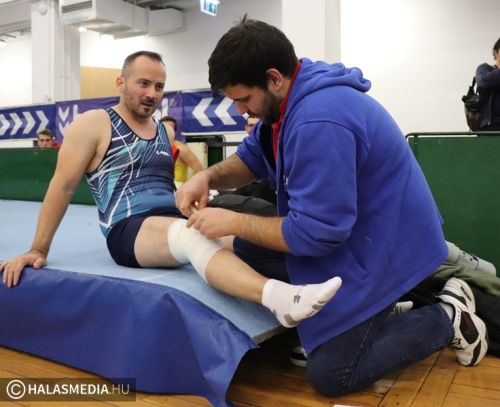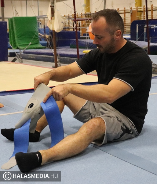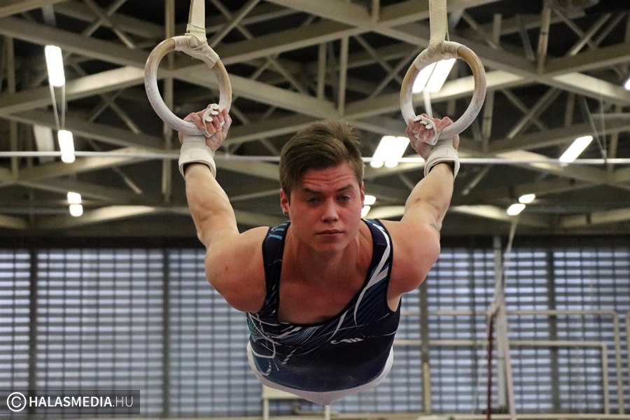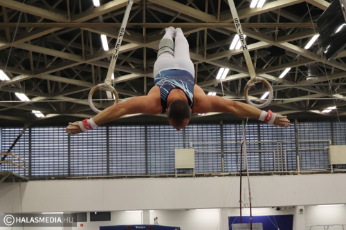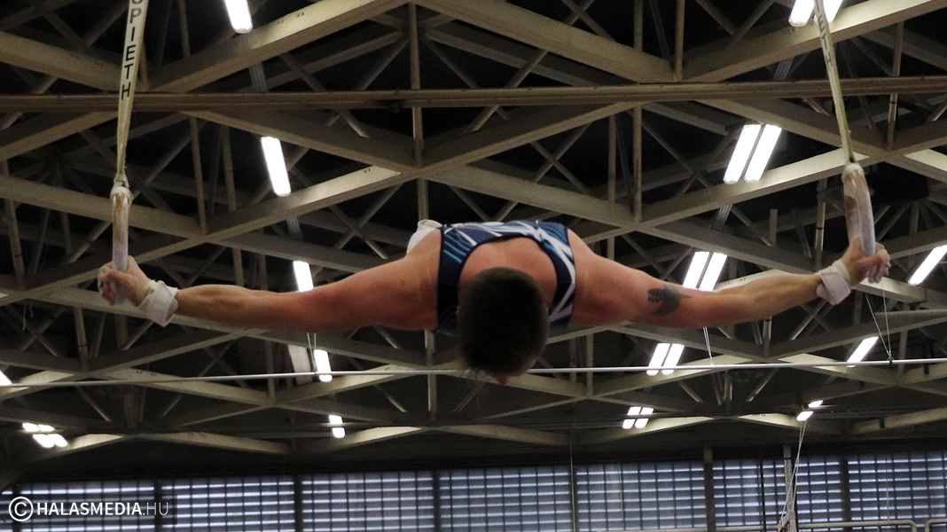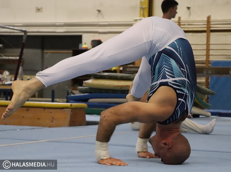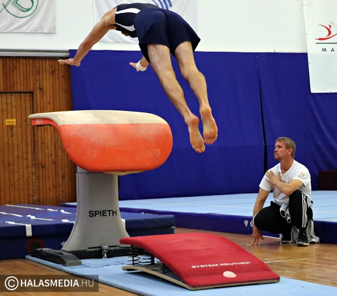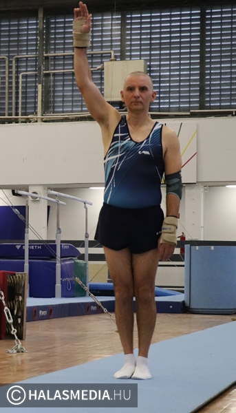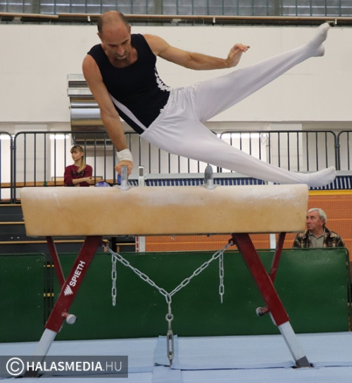 Budapest, az Istvánmezei úton lévő tornacsarnok adott otthont a tornászok felnőtt II. osztályú országos bajnokságának. A Fazekas DSE 40 éves átlagéletkorú csapata természetesen ott volt a megméretésen annak ellenére, hogy nem volt zavartalan a felkészülésük. Az egyébként is gyakran fájó izületek mellett az egyéni bajnoki dobogóra is esélyes Modok Gábor térdsérülést szenvedett az egyik edzésen. Ez viszont nem vette el senkinek sem a kedvét és megsokszorozott akarattal vágtak neki a hat szernek. Ezúttal is a Testnevelési Egyetem csapatai voltak a legnagyobb riválisok, ez azért is érdekes, mert ők amikor születtek, a halasiak már réges-rég abbahagyták a versenyzést, amelyet aztán újrakezdtek. Magyar Benjamin (fotónkon) volt a gárda legfiatalabb tagja, ő 23 esztendős.