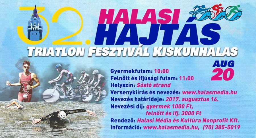 Már csak egy napig, vagyis szerdáig lehet nevezni az augusztus 20-án tartandó 32. Halasi Hajtás Triatlon versenyre. Ezúttal is több távon és korosztályban versenyezhetnek a halasi hármas próbát választó triatlonisták. A legjobbak pénzdíjazásban részesülnek.