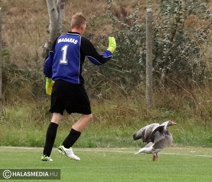A Madaras volt a Kiskunhalasi Szilády RFC ellenfele a megyei III. osztályú bajnokság szombat délutáni mérkőzésén. A találkozó nemcsak az öt gólról és a halasi győzelemről marad emlékezetes, ugyanis a 90 perc folyamán többször is visszatért egy liba a Bundzsák Dezső Sportközpontba és leszállt a pályára, miközben zajlott a mérkőzés.