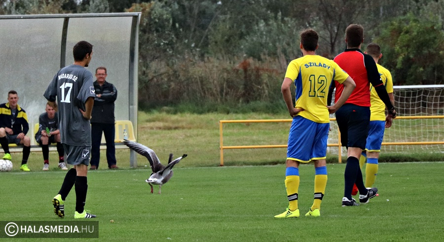 A 7.fordulót rendezték meg a megyei III. osztályú bajnokságban. Az előző fordulóban 5-2-es vereséget szenvedő Kiskunhalasi Szilády RFC a Bundzsák Dezső Sportközpont B-pályáján fogadta a Madaras csapatát. Az ellenfél több pontot gyűjtött, mint a halasiak, éppen ezért is volt fontos a győzelem megszerzése. Az ősziesre fordult időjárás miatt a nézők a nemrégiben elkészült fedett lelátó alatt kerestek menedéket a szemerkélő esőben. Az első pillanatoktól kezdve egy liba figyelte a játékot és ha már ott volt, akkor leszállt a játékosok közé a pályára. Sikerült ugyan elkergetni, de aztán egy tiszteletkör után visszatért és sétálgatott a zöld gyepen. A 90 perc során ez a jelenet többször is megismétlődött.