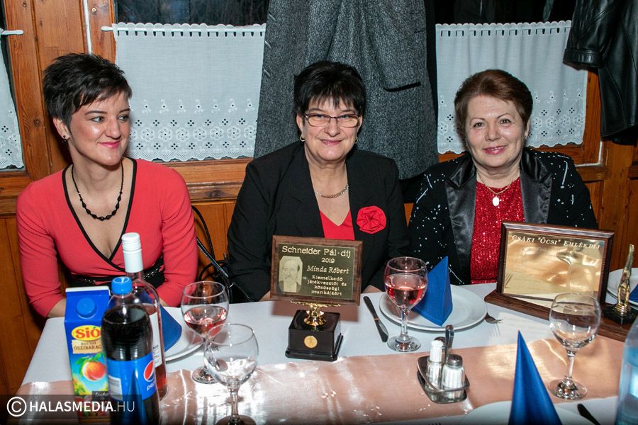 A Schneider Pál Emlékdíjat Minda Róbert vehette át, ő 16 esztendeje játékvezető. A kitüntetést Schneider Pálné adta át. A Csáki Öcsi Emlékdíjat idén az Old Boy tornászok (Csikós Csaba, Kárpi Róbert, Mamlecz Zsolt, Modok Gábor, Nagy Czirok Károly, Pásztor Gábor, Varga Zsolt, Jáger Levente) érdemelték ki. Az elismerést Csáki László özvegye, Éva asszony adta át. A Sóstó Csárda megköszönte a bál szervezésében nyújtott segítséget Csala Mónikának és Jáger Leventének. A finom falatok elfogyasztása után Dj. Csongi retrodiszkójára mulattak a vendégek.