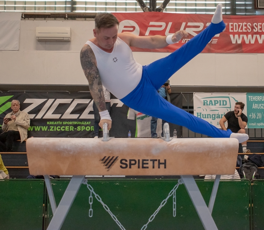 Ahogy azt már az elmúlt években megszokhattuk, a felnőtt II. osztályú veterán korosztályú, ám a fiatalokat megszégyenítő lelkesedéssel versenyző, készülő csapat ismét eredménye volt. Csapi Attila, Majoros Csaba, Szalai Viktor, Varga Zsolt, Modok Gábor a harmadik helyet szerezte meg. Érdekesség, hogy Varga Zsolt, a maga 52(!) esztendejével a mezőny legkorosabb résztvevője volt. A 49 esztendős Modok Gábor (képünkön, lent) hosszan gyógyuló vállsérülése ellenére korláton, holtversenyben a második legjobb gyakorlatot mutatta be.