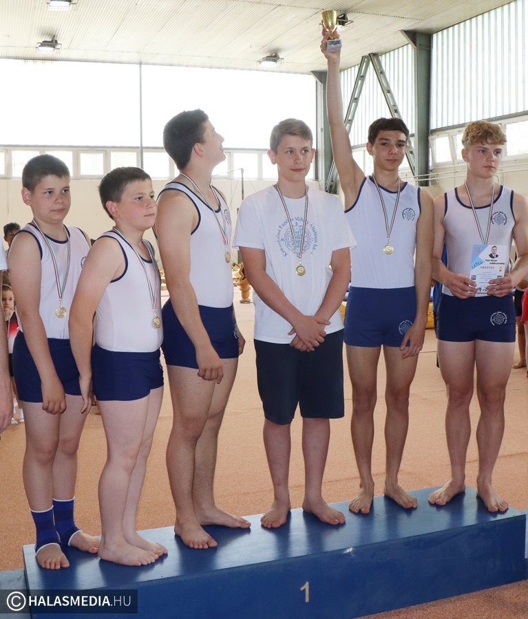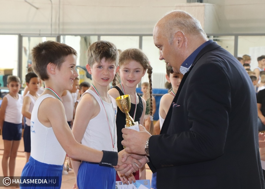 - Fontos számunkra ez a verseny. Petivel kiváló kapcsolatban voltunk, így minden ilyen alkalommal itt a helyünk. A gyerekek számára is kiemelt helyen szerepel a megméretés - fogalmazott dr. Gyulai Gergely, a Testnevelési Egyetem docense, a tornászcsapat vezetője. A szerek mellé lépő srácok mellett a mezőny egyetlen lány tagja, Rokonai Rézi is megérdemli a nagy dicséretet. Igyekezett mindenki a legjobb tudásának megfelelő gyakorlatot bemutatni. Ezt a szigorú, ám mosolygós pontozóbírók is értékeltek. Ott volt a mezőnyben Tóth Péter fia, Petya is, aki a legidősebb korosztályban mérette meg magát. Mindenki nagyon várta a kora délutánt, amikor az eredményhirdetés következett.