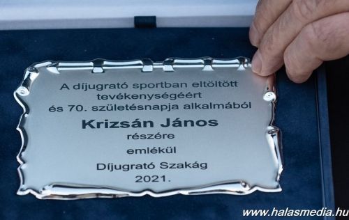 A szám eredményhirdetésén, az érmek és ajándékok átadása után két veterán halasi lovas és versenybíró vehetett át Juhász Tibortól, a Magyar Lovassport Szövetség elnökségi tagjától a Díjugrató Szakbizottság által adományozott emlékplakettet. A 70. születésnapjuk alkalmából emlékplakettel köszönte meg a szakág munkáját Krizsán Jánosnak és Fehér Károlynak. Utóbbi egészségügyi okok miatt nem vehette át személyesen a díjat.