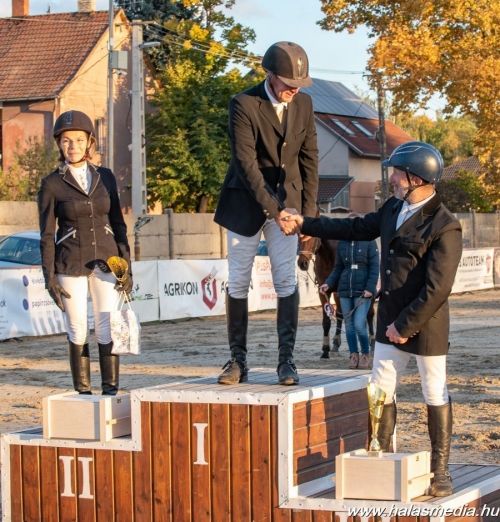 A második helyezett Dr. Szabó Katalinon egyáltalán nem érződött csalódottság. „Az utóbbi időben lett időm arra, hogy lovagoljak és versenyekre járjak. Kiskunhalasra is a versenyzési lehetőségért érkeztem és nem csalódtam. Jól mentünk az alappályán Fintorral, de az összevetéssel sem lehetek elégedetlen. A dinamikánk megvolt, talán a túl nagy fordulók miatt lett hosszabb a pályán töltött időnk a kelleténél. Én a második helynek is örülök, és ha tehetem, visszatérek Kiskunhalasra versenyezni.”