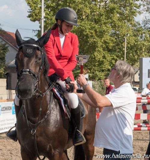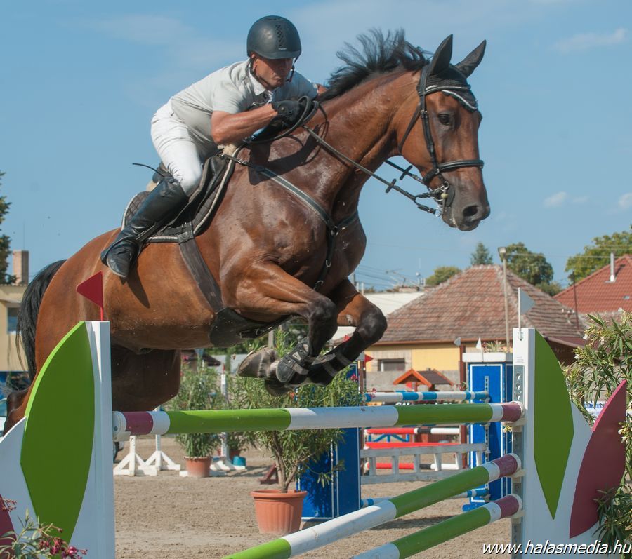 Óriási helyi siker a háromnapos országos minősítő díjugrató verseny nagydíjában Kiskunhalason. Weinhardt Virág és Equest Cha-Cha (címképen), a 145 cm-es pályán higgadt és legfőképp hiba nélküli versenyzéssel tartotta itthon a legnehezebb versenyszám győzelmi trófeáját, a Modinvest Nagydíj kupáját. Virág sikere mellett két Fazekas bronz is a halasi lovassport erejét jelezte a záró napon. A versenyrendezők meg elégedetten nyugtázhatják, a két hét múlva sorra kerülő Fiat Díjugrató Magyar Bajnokság főpróbája remekül sikerült.