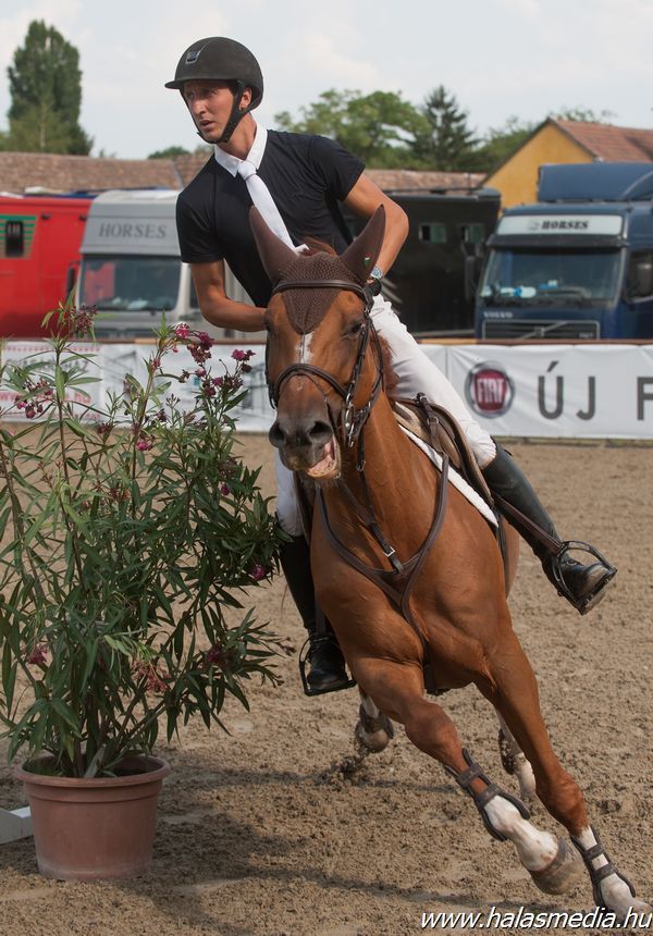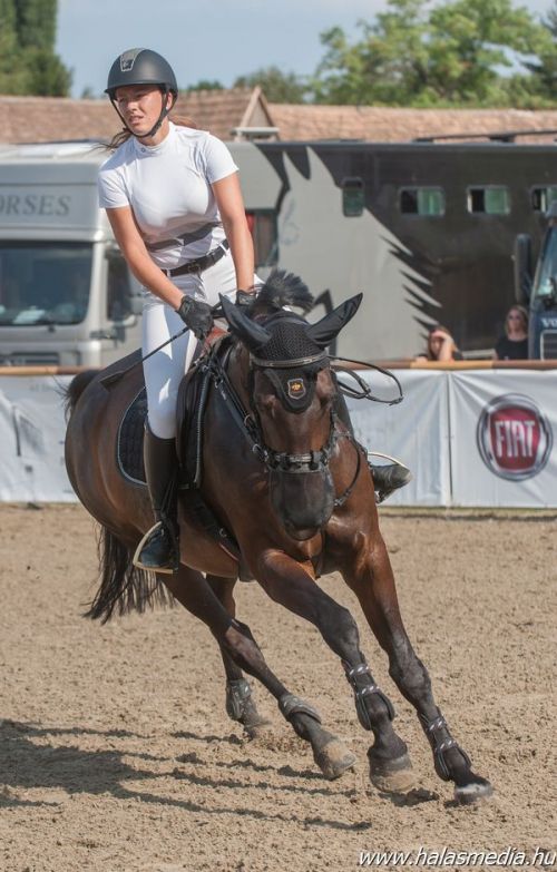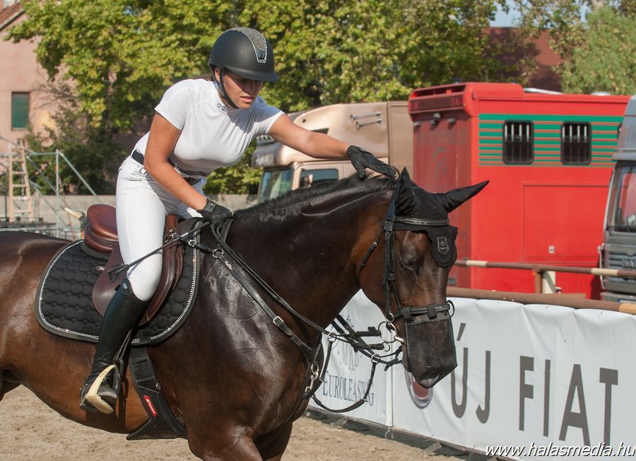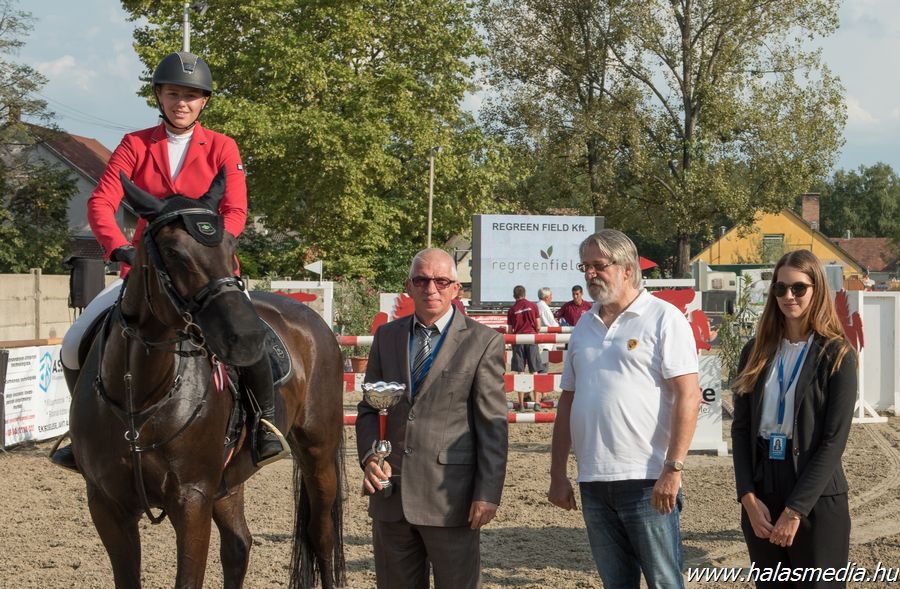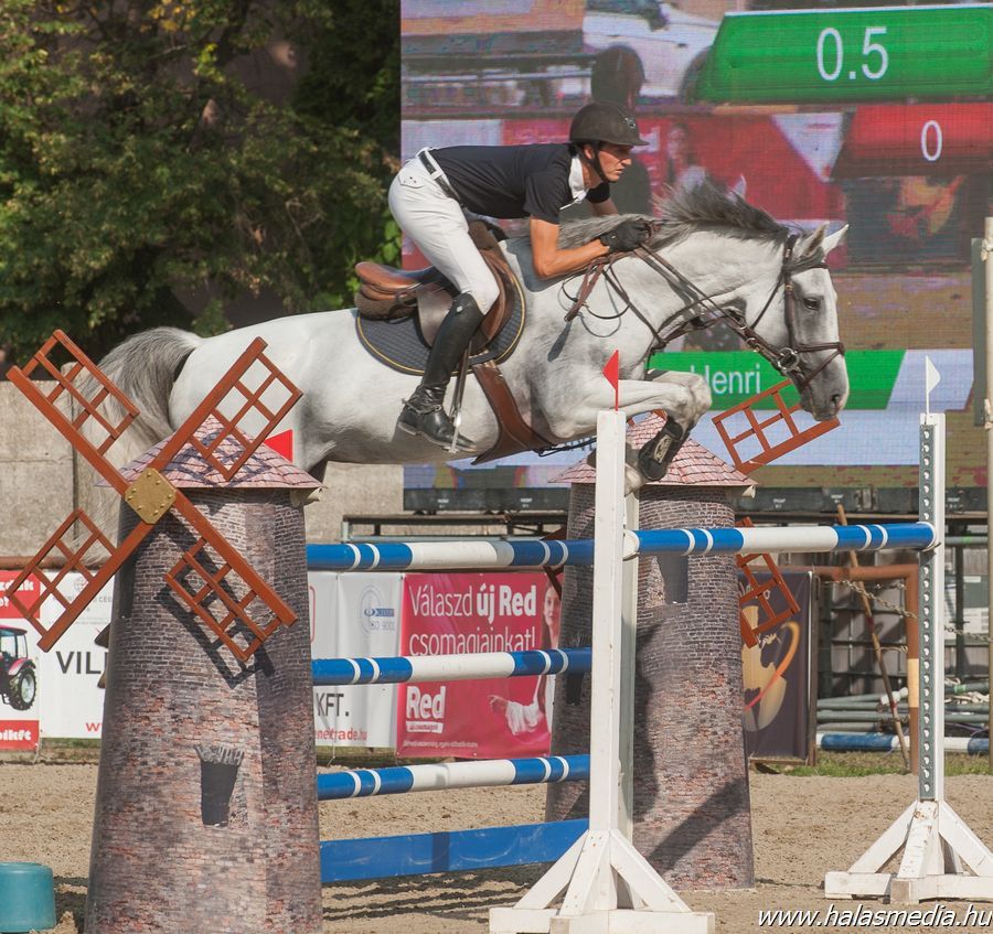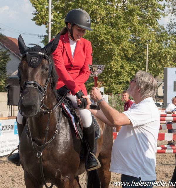 Virág harmadikként vetett össze. Az előtte lovagló Lázár Zoltán és Mráz Tamás verőhibát vétettek első lovaikkal, így a halasi lány láthatóan biztonsági, hibátlan pályára törekedett, amiben lova, Equest Cha-Cha kitűnő partnernek bizonyult. A páros átvette a vezetést. Az utána következő lovasok akadályt vertek, csak az utolsóként második, Basco nevű lovával induló Mráz Tamás nem, ők viszont 22 századdal lassabban értek a célba, ami a kiskunhalasi tehetség első helyét jelentette. A Modinvest Kft. nagydíját és a helyezetteknek járó díjakat Németh Mikós a társaság ügyvezetője adta át Juhász Tibor versenymenedzser és Juhász Dóra, a versenybíróság elnöke társaságában.