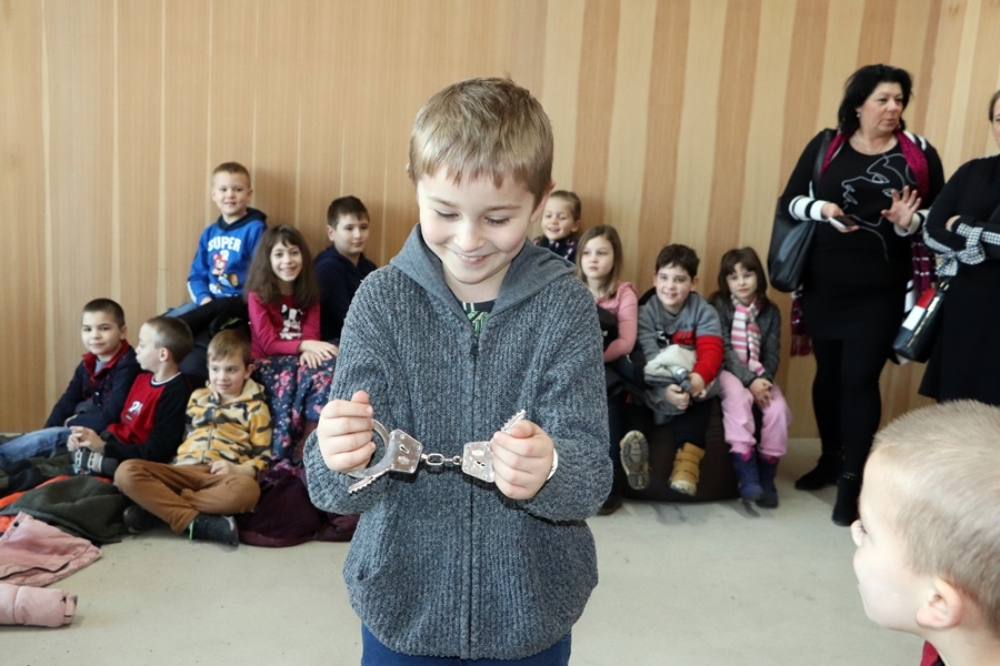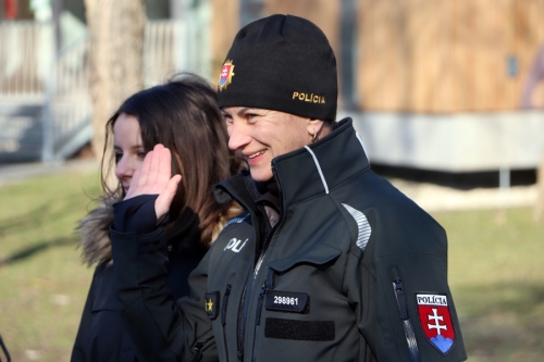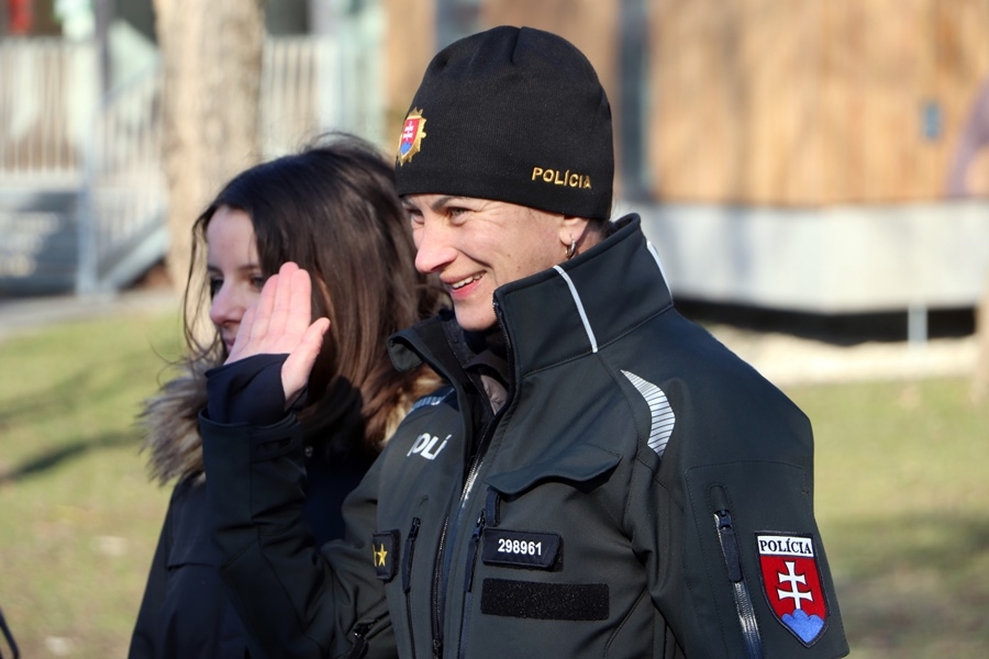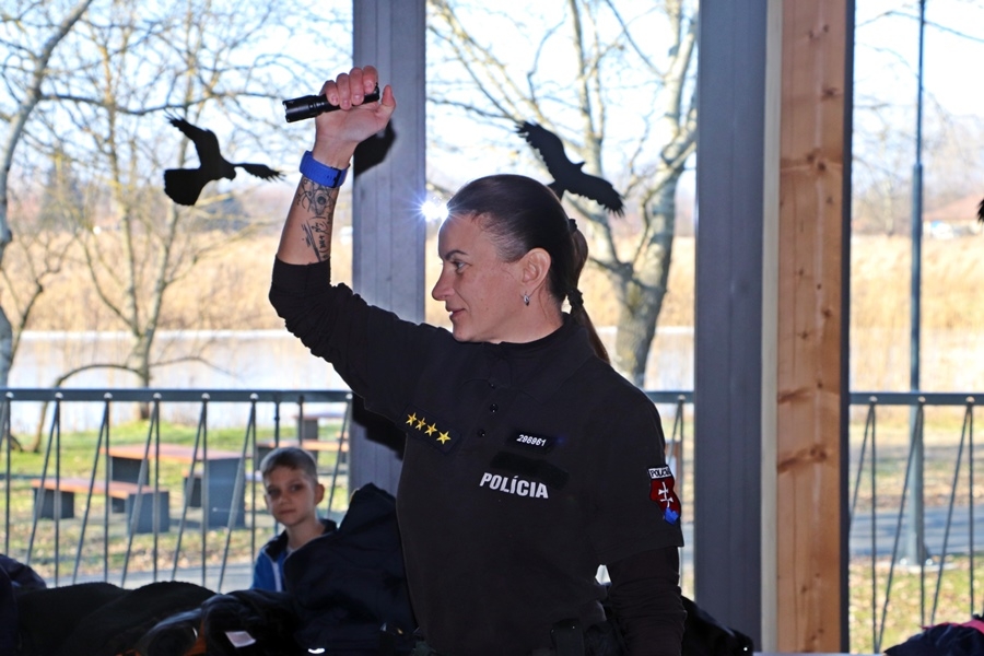 Zuzana Pavlović őrnagy a szlovák felszerelésekről tartott bemutatót a gyerekeknek és a kísérő tanároknak. Részletesen megmutatta az általuk használt golyóálló és taktikai mellényeket, a gyerekek be is öltözhettek a rendőri felszerelésekbe. A diákok nagy örömére előkerültek a bilincsek is, nagy kacagások közepette segédkeztek a rendőri akciók imitálásában.