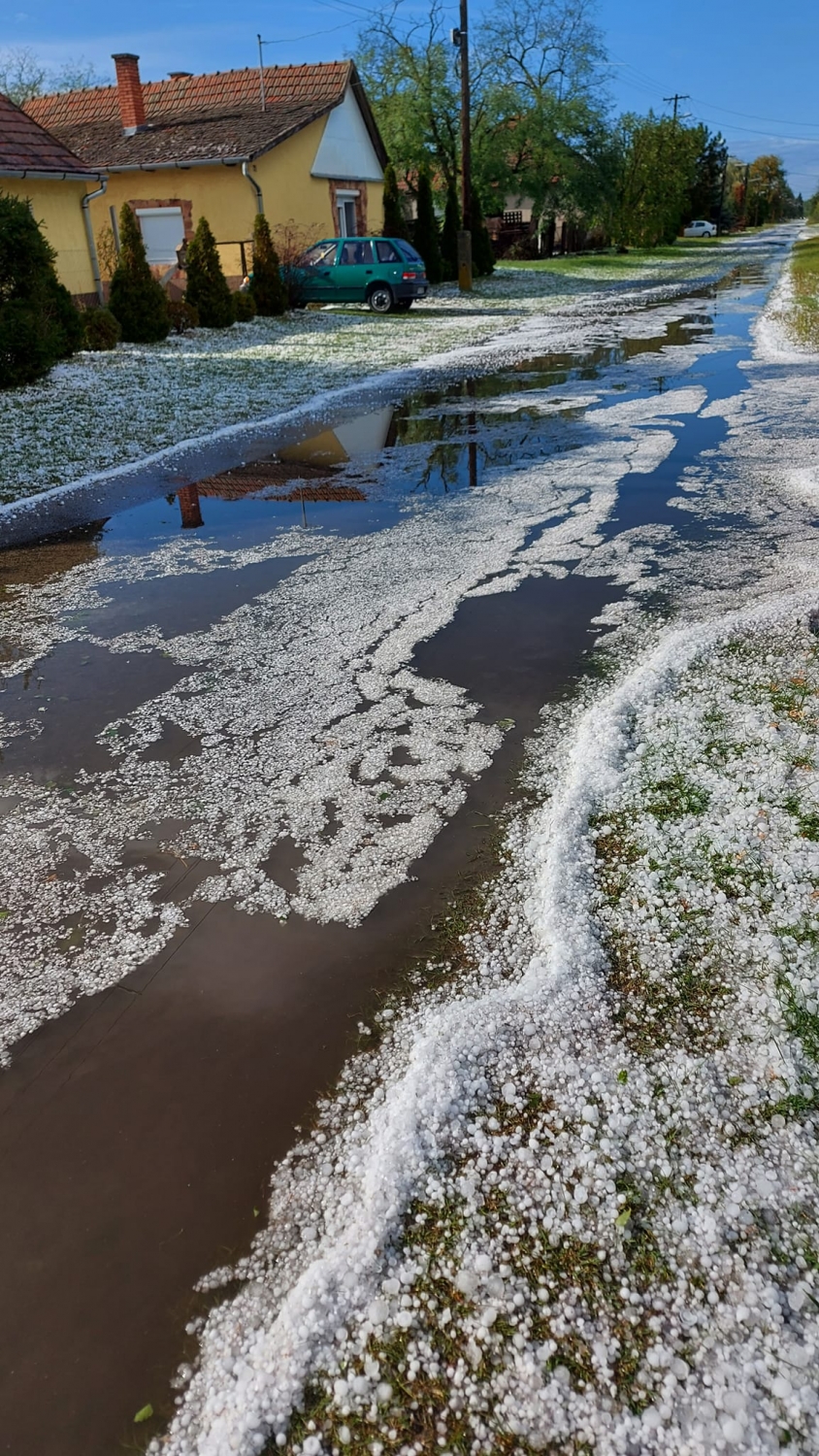 Vicai Zsolt nevű olvasónk Mélykút mellett készítette ezt a fotót. Ott is tetemes mennyiségű jég hullott a délután folyamán.
