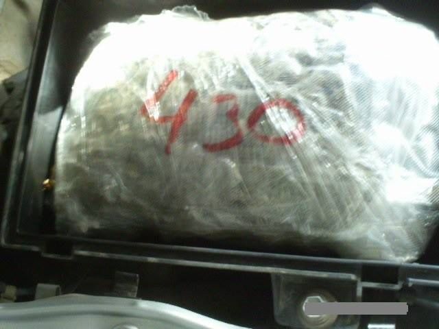 A Suzuki átvizsgálásakor a pótkerék tompa hangot adott, majd a szelep megnyomásakor a kiáramló levegő erős, jellegzetes szaga miatt a pénzügyőrök arra gyanakodtak, hogy abban marihuána gyanús anyag van. A motortérben lévő levegőszűrőben, nejlonba csomagolva, szintén kábítószergyanús anyagot találtak a NAV munkatársai.