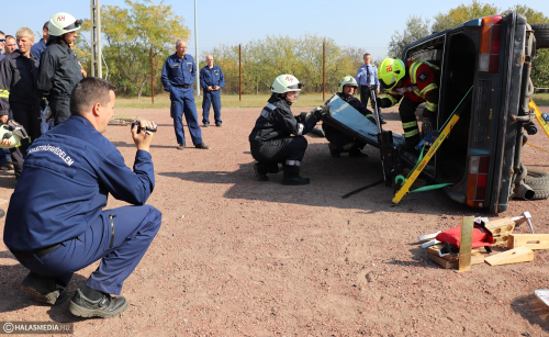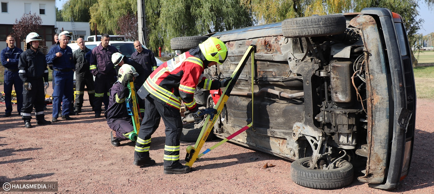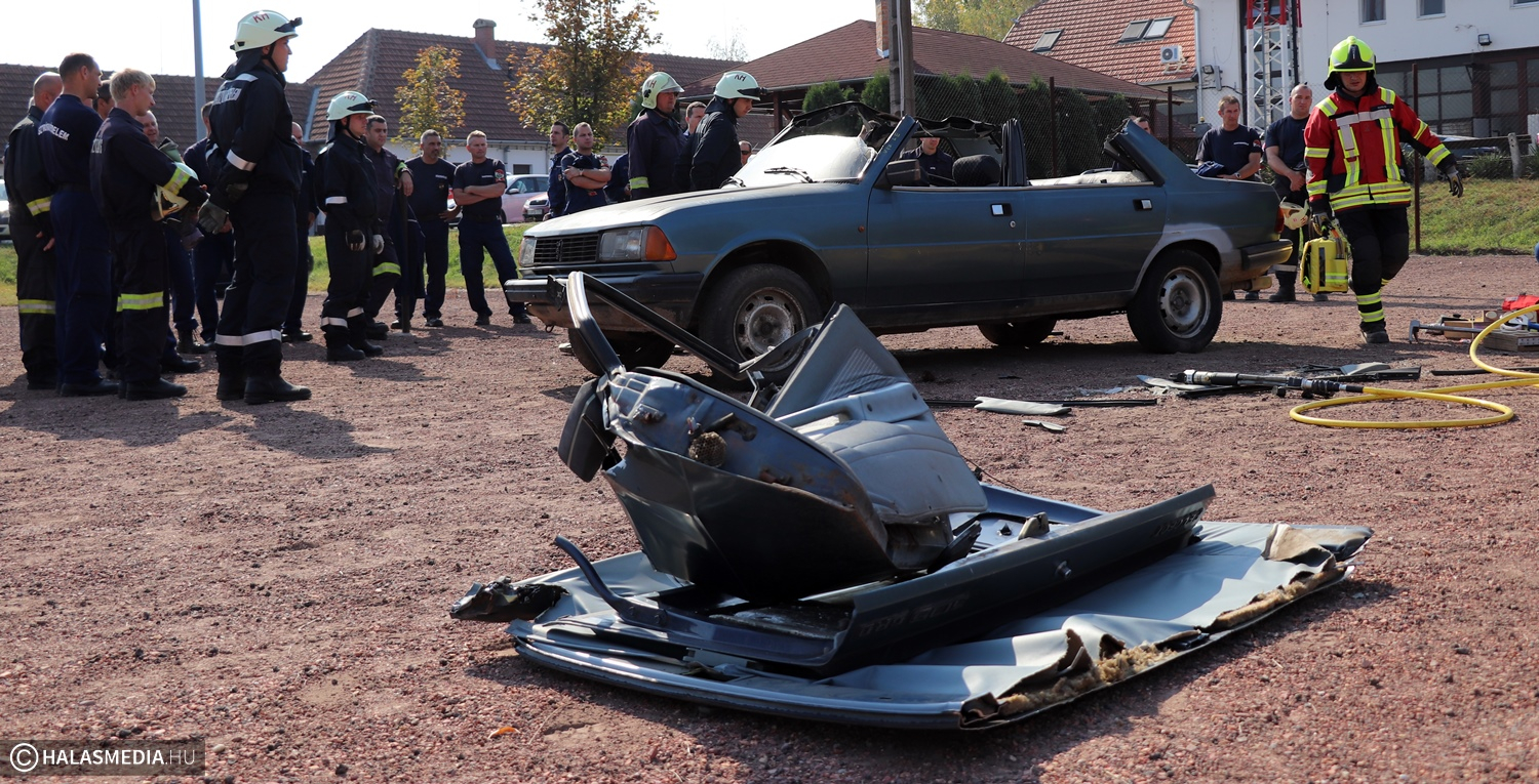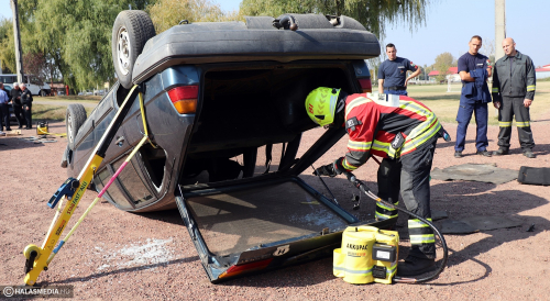 Beszorult sérült, műszaki mentés, feszítő-vágó. Gyakran olvasni ezekről egy-egy baleseti tudósításban. A statisztikák szerint egyre több ilyen jellegű beavatkozáshoz riasztják a tűzoltókat. A járművek karosszériája erősebb, korszerűbbek a védelmi rendszerek is, éppen ezért nem mindegy, hogy a sérültek kiszabadításához milyen eszközöket használnak. Ez volt a témája annak a szakmai napnak, amelynek a Kiskunhalasi Katasztrófavédelmi Kirendeltség volt a házigazdája.