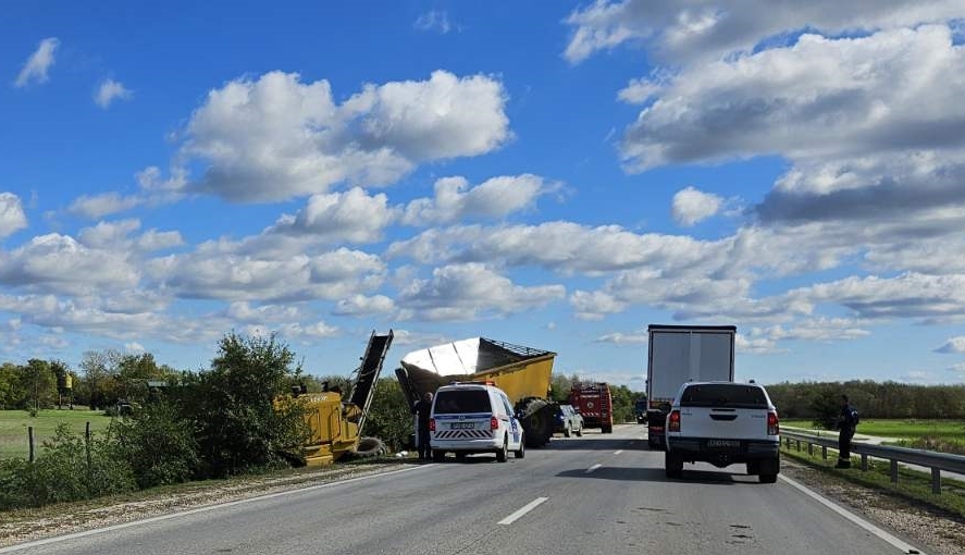 Árokba hajtott egy betakarítógép az 55-ös főút Kisszállás és Ásotthalom közötti szakaszán, a 47. kilométer közelében- tudtuk meg. A Bács-Kiskun Vármegyei Katasztrófavédelmi Igagatóság tájékoztatása szerint a baleset pénteken fél 12 körül történt a körforgalom közelében, Szeged irányában. A kombájn egy utánfutót vontatott, amely részben az úton volt, akadályozta a forgalmat. Műszaki mentés céljából a kiskunhalasi hivatásos tűzoltókat riasztották a helyszínre.