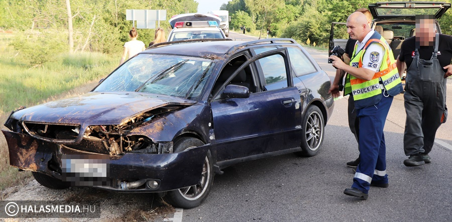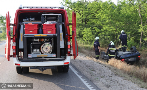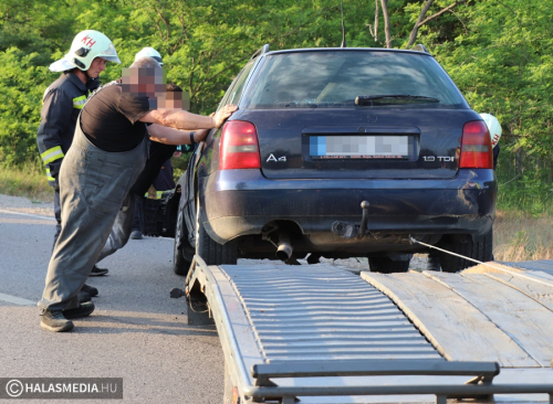 A mentők a halasi kórházba szállították kivizsgálásra annak az Audinak a sofőrjét, amely egy szabálytalan, figyelmetlen autós miatt az árokba borult az 53-as főúton, Kiskunhalas és Pirtó között. A balesethez riasztották a halasi tűzoltókat is, akik a kerekeire állították, majd áramtalanították a járművet.