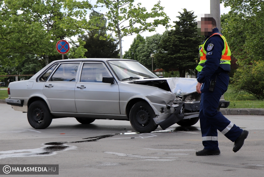 Több szemtanúja is volt annak a karambolnak, amely pénteken 10.30 óra körül történt a Semmelweis téren. Egy Renault közlekedett a Nagy Szeder utcán a mentőállomás felől, amikor a Monszpart László utcai kereszteződésbe érve nem adott elsőbbséget a belváros felől érkező Audinak. A két jármű ütközött, a Renault továbbsodródott, a padkán felkaptatva a füvön állt meg.