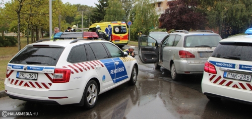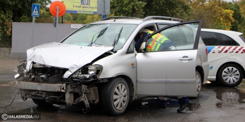 Három sérültet szállított kórházba a mentő, miután két autó ütközött vasárnap délelőtt Kiskunhalason, a dr. Monszpart László utca és a Nagy Szeder utca kereszteződésében. Helyszíni információk szerint egy Toyota haladt a buszállomás irányába, de nem adott elsőbbséget a védett útvonalon közlekedő VW-nek, és oldalról nekihajtott. A Volkswagen az ütközés erejétől a tetejére borult. Ebben az autóban ketten utaztak, az okozó járműben pedig csak a sofőr ült. Mindhármukat kivizsgálásra kórházba szállították. A halasi tűzoltók áramtalanították az autókat, majd a kerekeire állították a Volkswagent. A pontos körülményeket a Kiskunhalasi Rendőrkapitányság közlekedésrendészete vizsgálja.