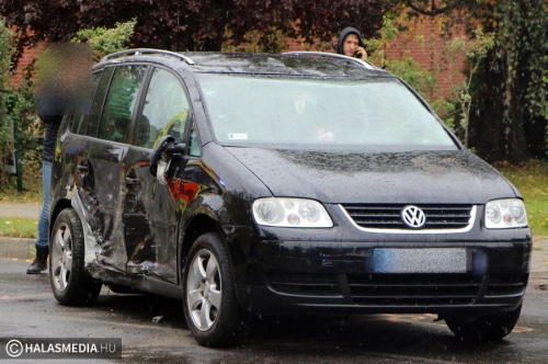 Baleset történt vasárnap nem sokkal fél tizenegy előtt Kiskunhalason, a dr. Monszpart László utca és a Nagy Szeder utca kereszteződésében. Egy Toyota érkezett a kórház felől a csomópontba, amikor nem adott elsőbbséget a mentőállomás irányából közlekedő VW-nek és összeütköztek. A Volkswagen a karambol nyomán felborult.