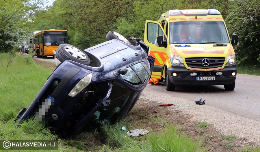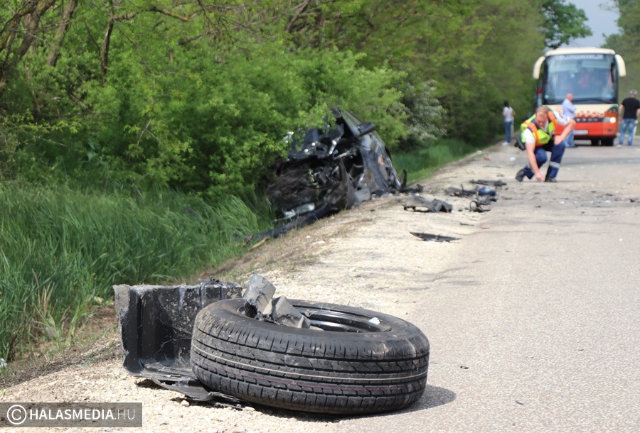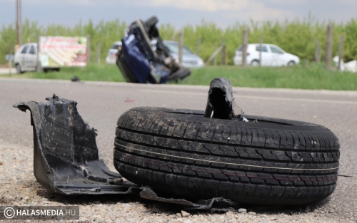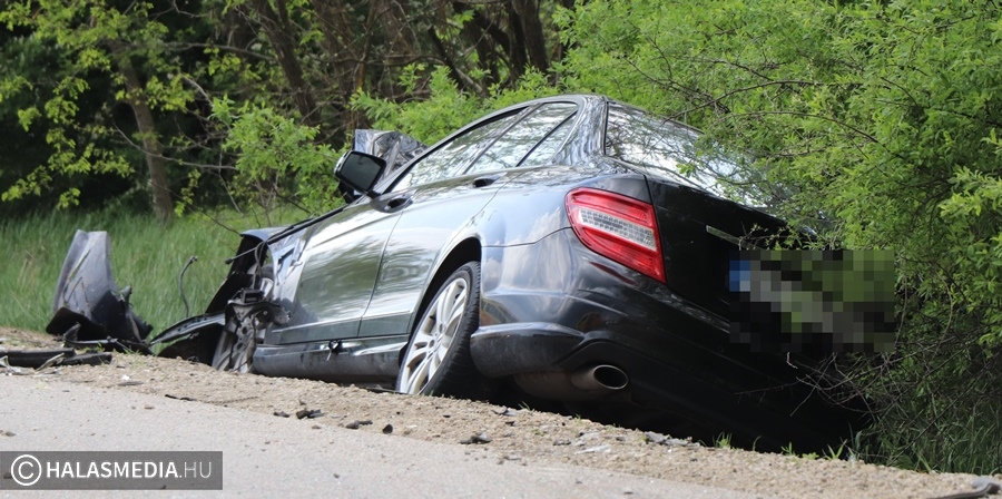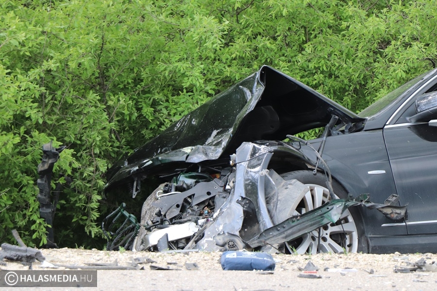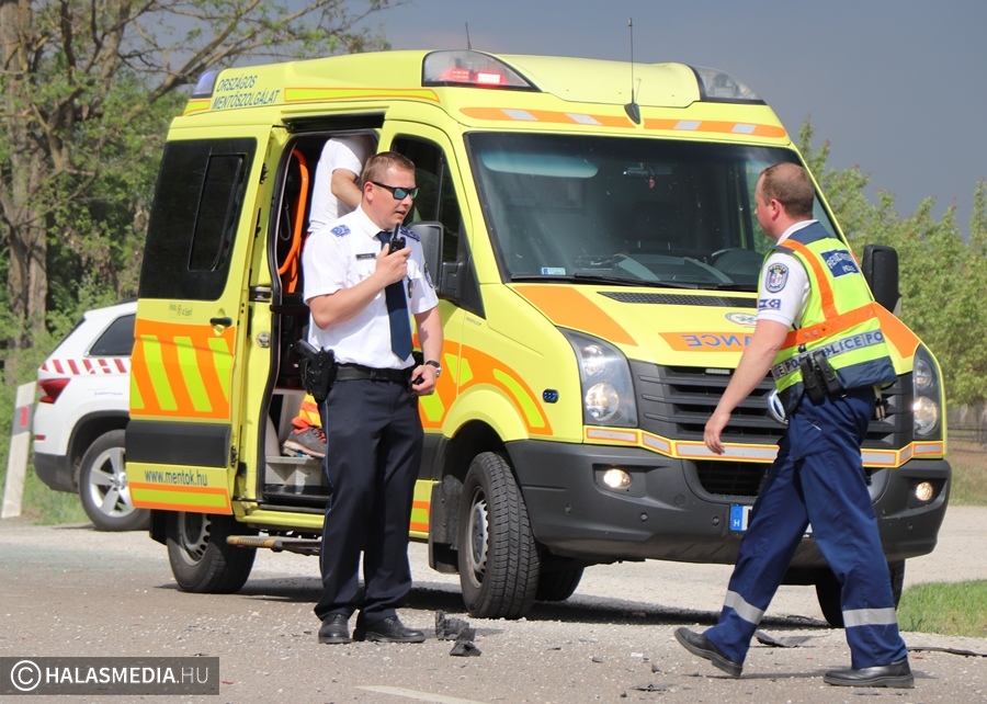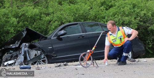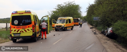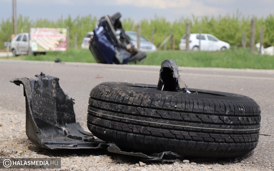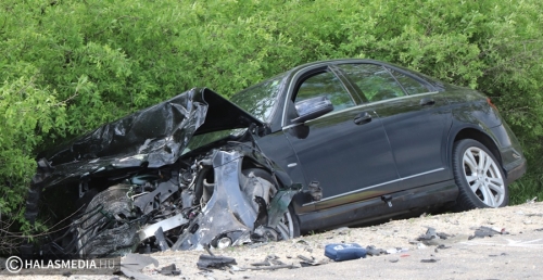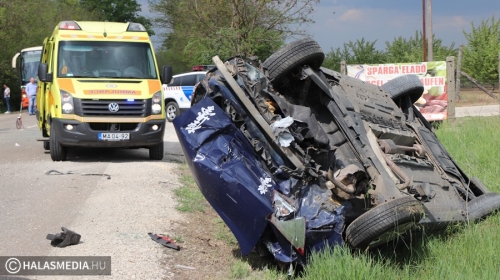 A vétlen autó az ütközést követően felborult, a másik autó is az árokba került. A Mercedes egyik kereke kiszakadt a helyéről. A riasztott a jánoshalmi és kiskunhalasi mentők négy sérültet vittek a Semmelweis Kórházba. A halasi tűzoltók a két járművet áramtalanították. A műszaki mentés és a helyszínelés idején előbb teljes, majd félpályás útzár volt. A baleset pontos körülményeit a Kiskunhalasi Rendőrkapitányság közlekedésrendészete vizsgálja.