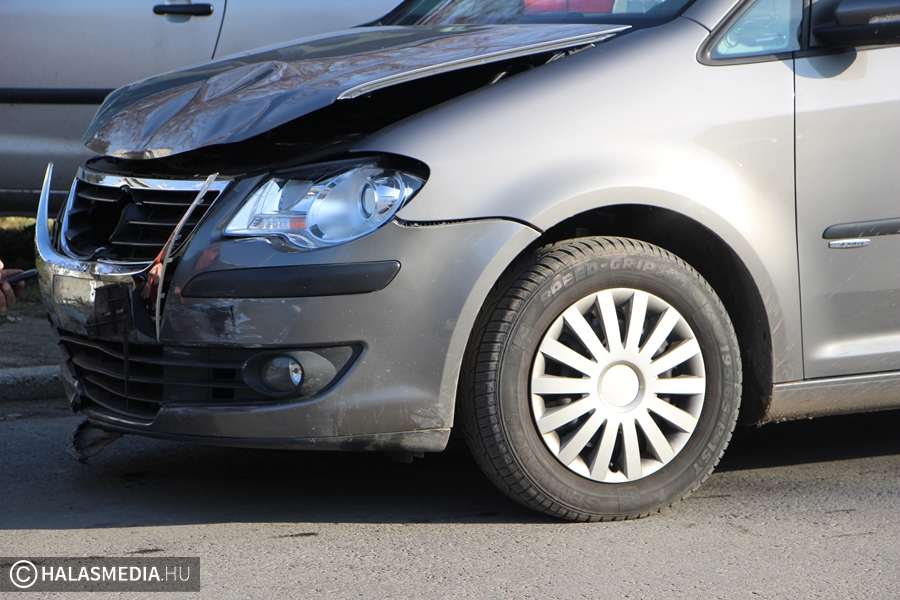 Elsődleges adatok szerint senki sem sérült meg abban a balesetben, amely nem sokkal negyed 11 után történt a kórház előtti kereszteződésben. Egy VW sofőrje nem adott elsőbbséget a védett útvonalon haladó taxinak és összeütköztek.