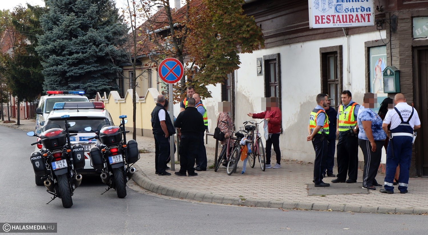 - Valami nagyon nincs rendjén a Halasi Csárdában, ugyanis percekkel ezelőtt több rendőrautó és két rendőrmotor is lefékezett - közölte egy olvasónk szerkesztőségünkkel délután egy óra után néhány perccel. A helyszínen azt láttuk, hogy egy félmeztelen férfit körbevesznek az egyenruhások, egy másik nagydarab fiatalember pedig kiabált. Utóbbi később szabadon távozhatott. A rendőrök gyorsan intézkedtek, végig higgadtak maradtak. A körülmények nem ismertek még, úgy tudjuk, ütés és pofon is csattant, hogy pontosan mi történt, annak tisztázására két embert rendőrautóba ültettek és előállítottak a kapitányságra. Háromnegyed kettőre helyreállt a rend a csárdánál.