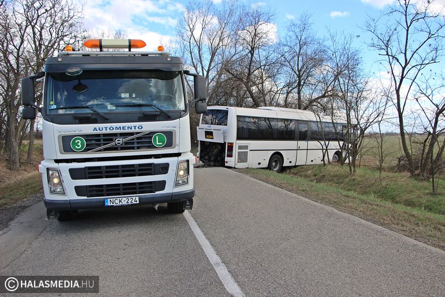 Közben egy távolsági busznak is műszaki mentésre volt szüksége. A sofőr szerette volna kikerülni a baleset helyszínét, ám e közben megakadt az útmenti árokban. A gyors segítségnek köszönhetően nem sokkal később a jármű ismét az úttesten volt.