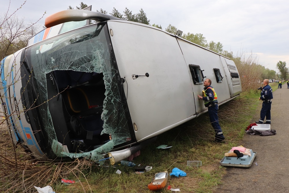 Buszbaleset Kiskunhalas közelében: 12 sérültet szállítottak kórházba (galéria)