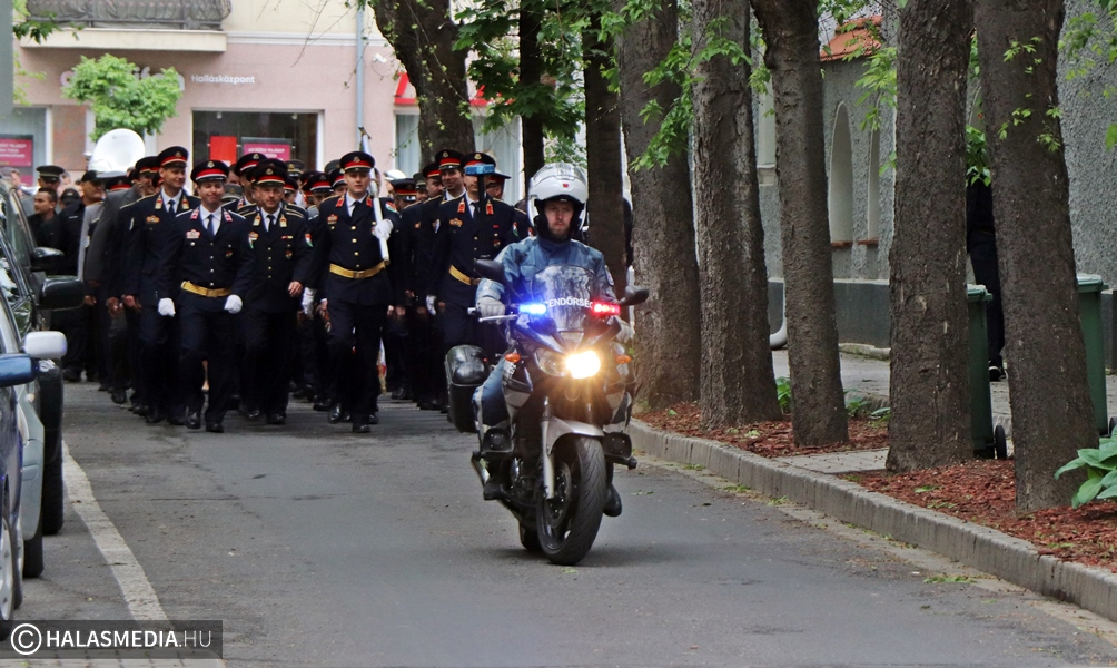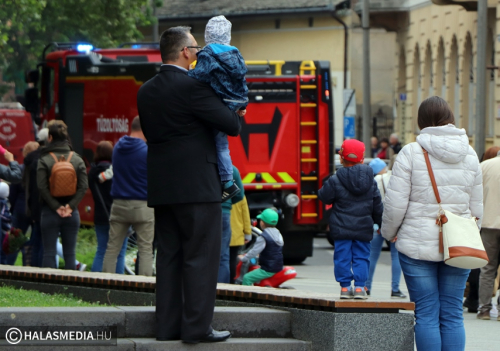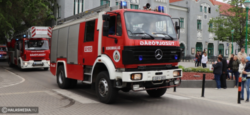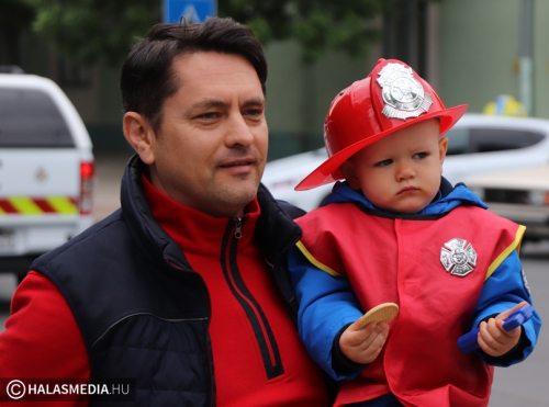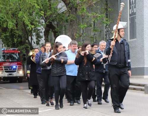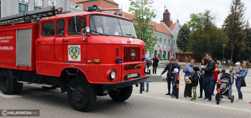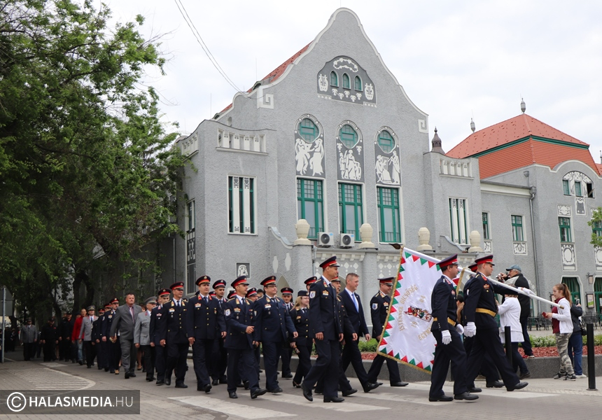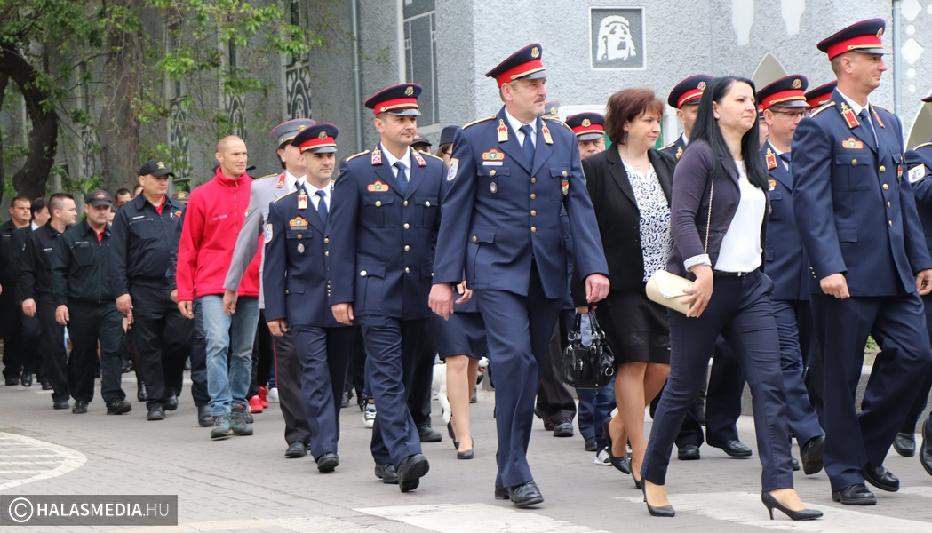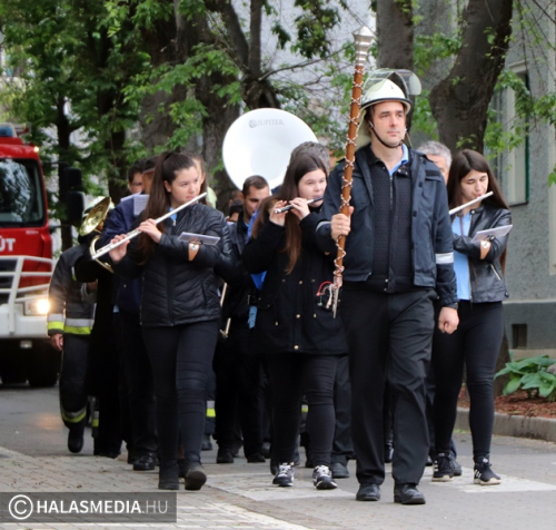 Május negyedike, Szent Flórián, a tűzoltók védőszentjének a napja. Idén ezen a szombaton rendezték a megyei tűzoltónapot, amelynek Kiskunhalas volt a házigazdája. Már kora reggel nagy volt a készülődés a református templom melletti parkolóban, ahol a Kiskunhalasi Városi Fúvószenekar muzsikája fogadta az érkezőket. Stílszerűen Lauer Zsolt karnagy is egy korabeli tűzoltósisakot viselt. Nem sokkal háromnegyed kilenc után indult el az ünnepi menet, amely a Városháza utcán keresztül érintette a Bethlen Gábor teret. A felvonulást a fúvósok vezették fel, majd a halasi tűzoltók csapatzászlója után jöttek a hivatásosok, önkéntesek, a Tüzes Kunok Járási Mentőcsapat, valamint a Dél-Magyarországi Tűzoltó és Technikai Mentő Egyesület tagjai is. Velük vonult Fülöp Róbert polgármester is. A gyermekek és a felnőttek is nagy örömmel fogadták a tűzoltóautókat.