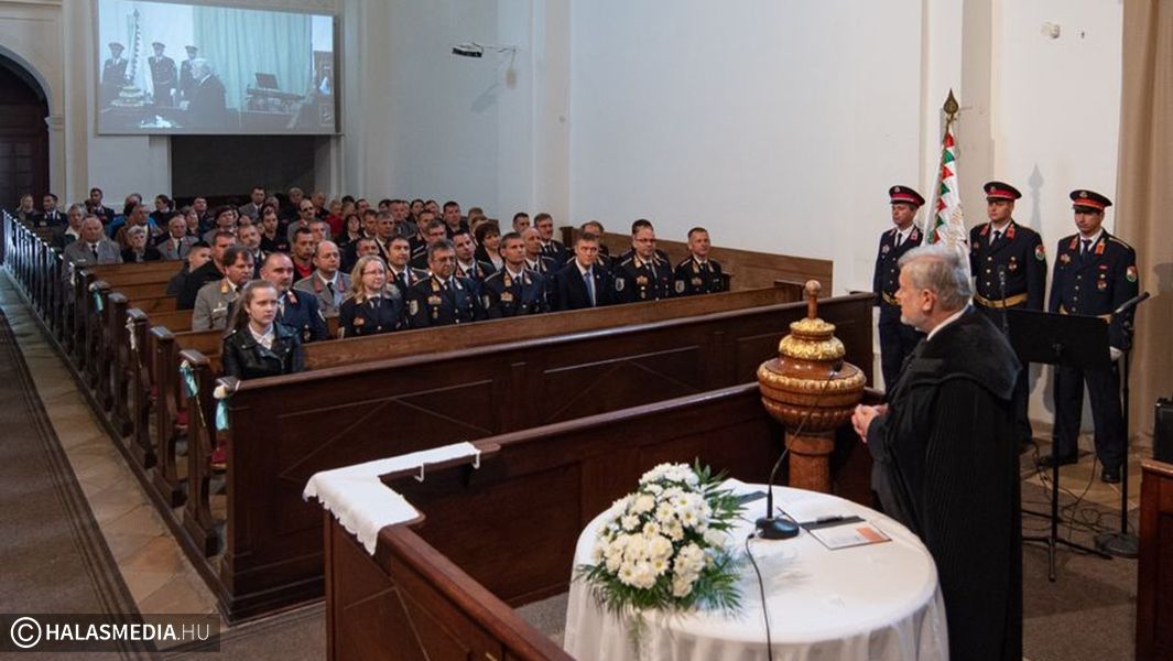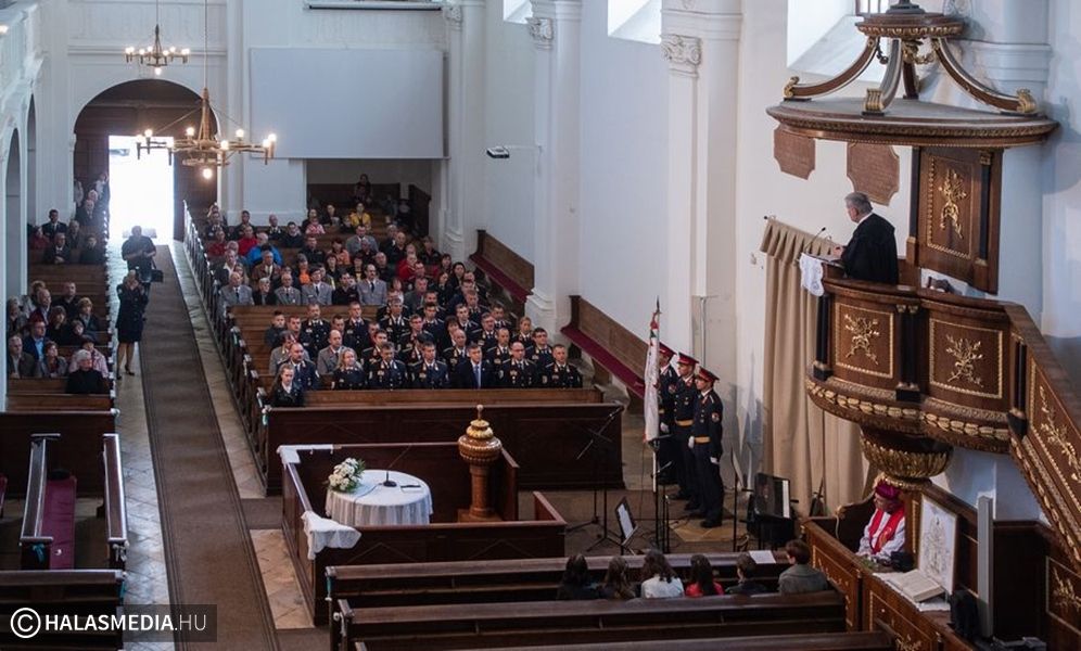 A felvonulás vége a református templom parkolója volt, majd a program résztvevői bementek a patinás épületbe. Ott istentiszteletet tartottak a tűzoltók tiszteletére. A fiatalok zenés szolgálata után Hozdik Zsolt tiszteletbeli kanonok Szent Flórián áldozatvállalásáról beszélt, majd Bödecs Pál tiszteletes szólt a hallgatósághoz. A szertartást követően a résztvevők átvonultak a moziba, az ünnepi állománygyűlés helyszínére.