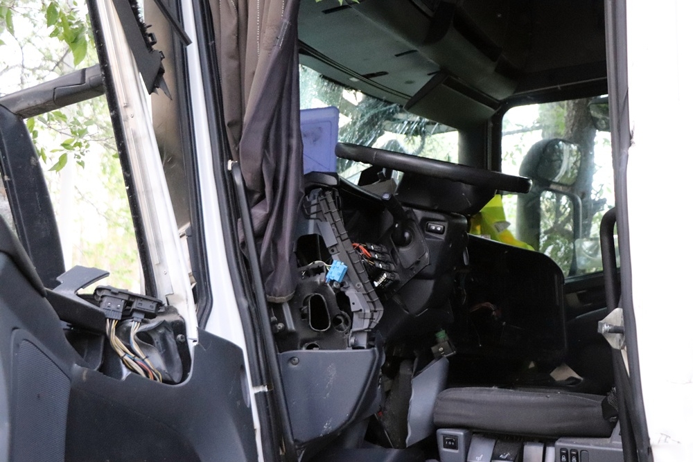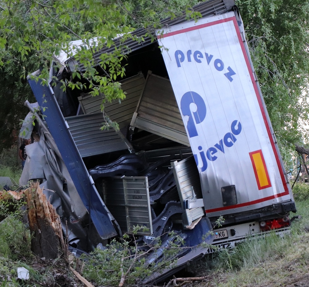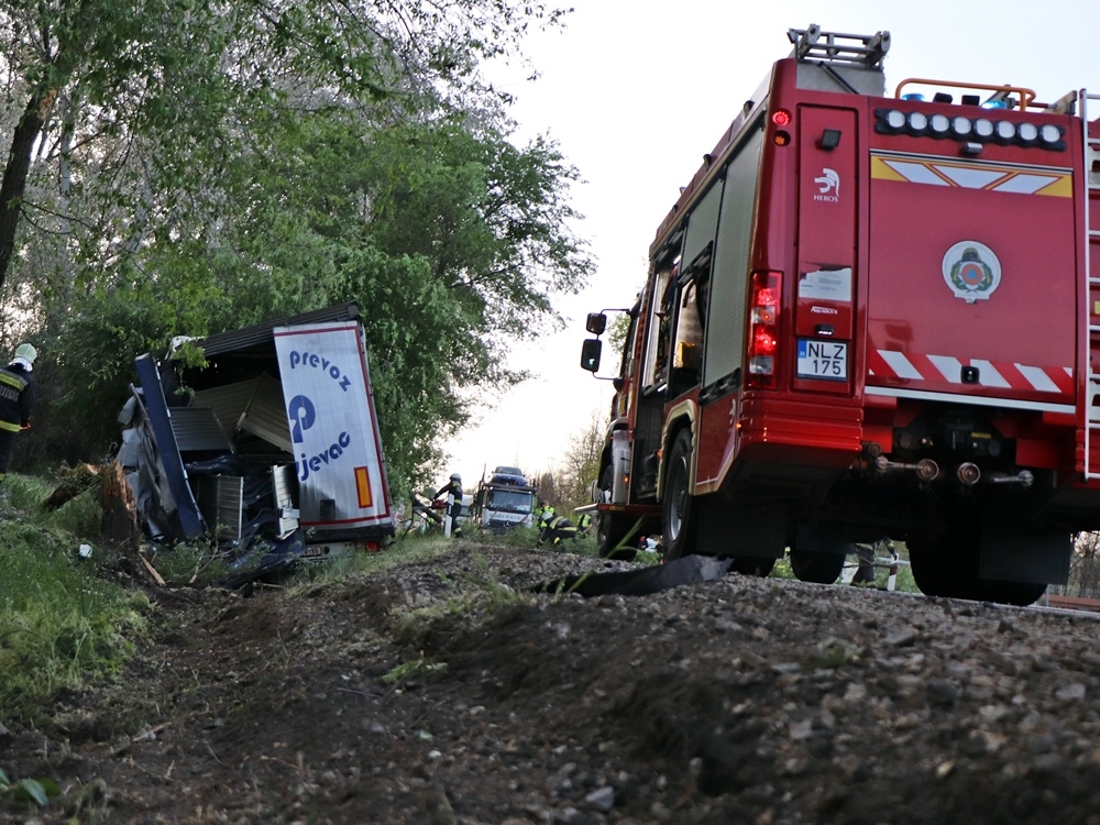 Menet közben kapott a bal első kereke durrdefektet annak a szerb kamionnak, amelyet baleset ért szerdán késő délután az 53-as főúton, Pirtó közelében. A sofőr elvesztette uralmát a hatalmas jármű fölött, áttért a szemközti oldalra, majd fát és egy közlekedési táblát kidöntve az árokban állt meg. A vezető beszorult a roncsba, őt a kiskunhalasi tűzoltók szabadították ki a teljesen összeroncsolódott fülkéből.