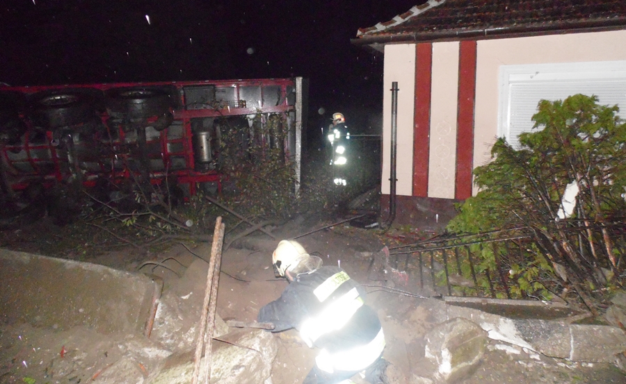 Feltehetően elaludhatott annak a szerb felségjelzésű kamionnak a sofőrje, amely aztán egy tompai ház udvarába borult az éjszaka. A baleset szerencsés kimenetelű volt, ugyanis senki sem sérült meg, viszont több utcában nincs víz.