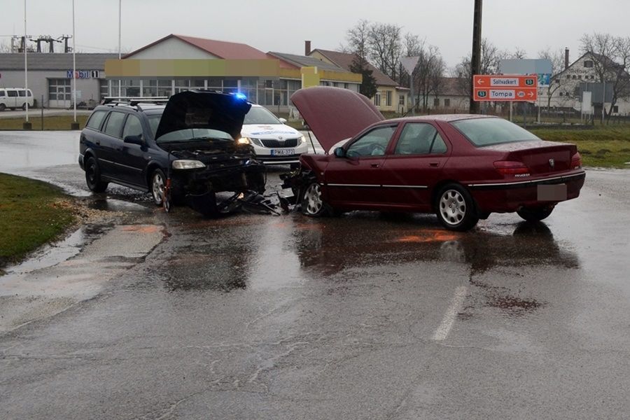 Mentők, rendőrök és tűzoltók siettek szombaton délután negyed három körül a Szabadkai útra. A jelzés szerint két autó ütközött össze. A helyszínen kiderült, hogy egy Peugeot haladt a Szabadkai úton az 53-as főút felé, amikor a balos kanyarban előzni kezdett. E közben ment neki a szemből érkező Opelnek. A Peugeot sofőrje, egy 45 éves tompai férfi elsődleges orvosi vélemény szerint könnyű sérüléseket szenvedett. A járműveket a kiskunhalasi tűzoltók áramtalanították. Az anyagi kár jelentős.
