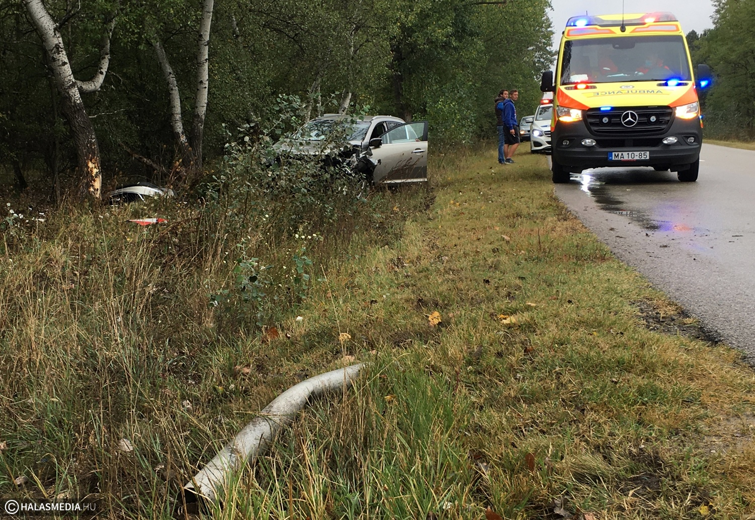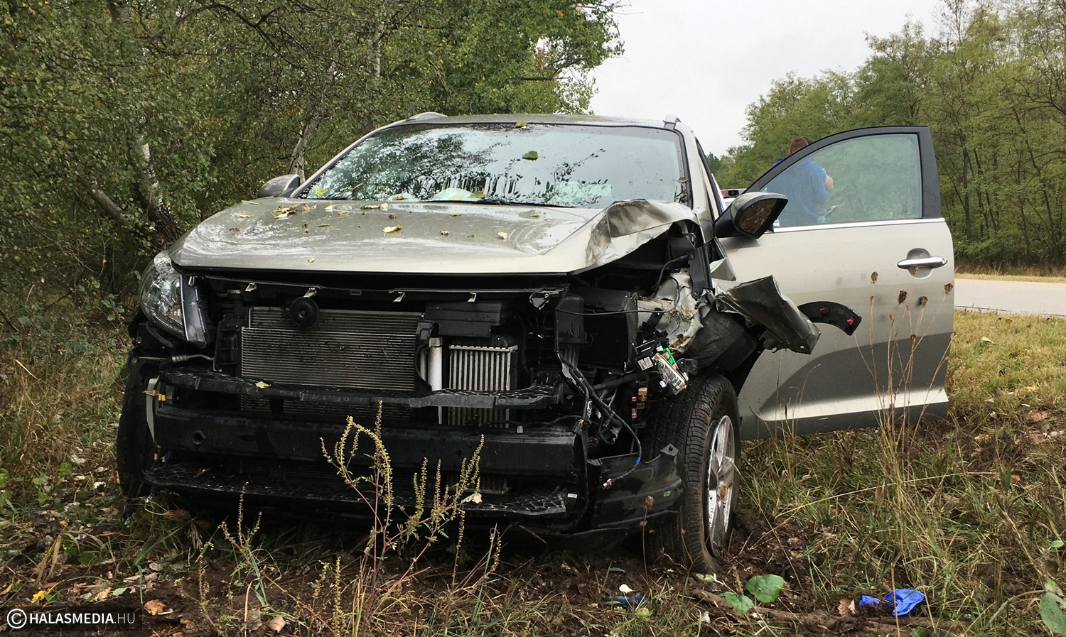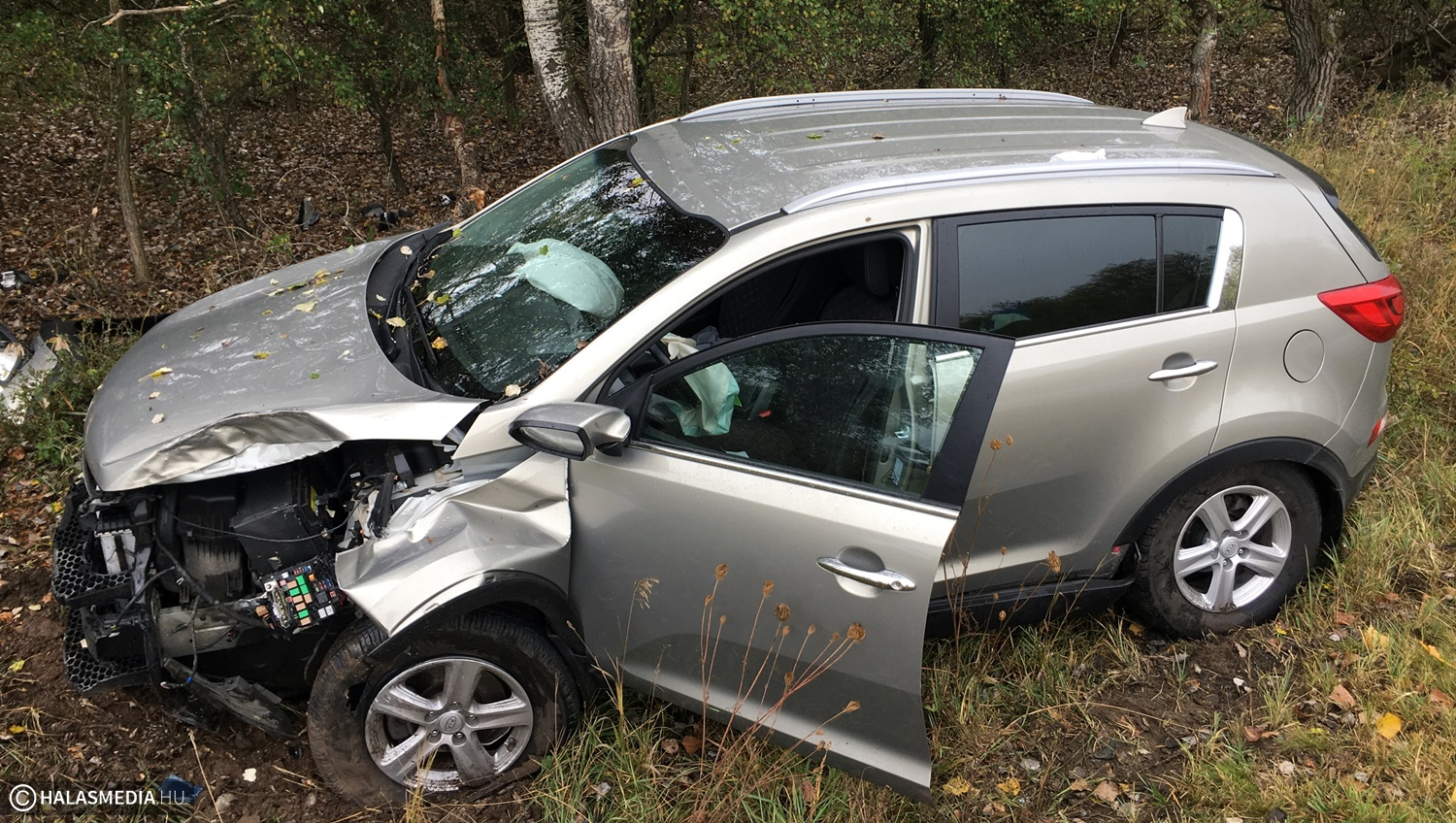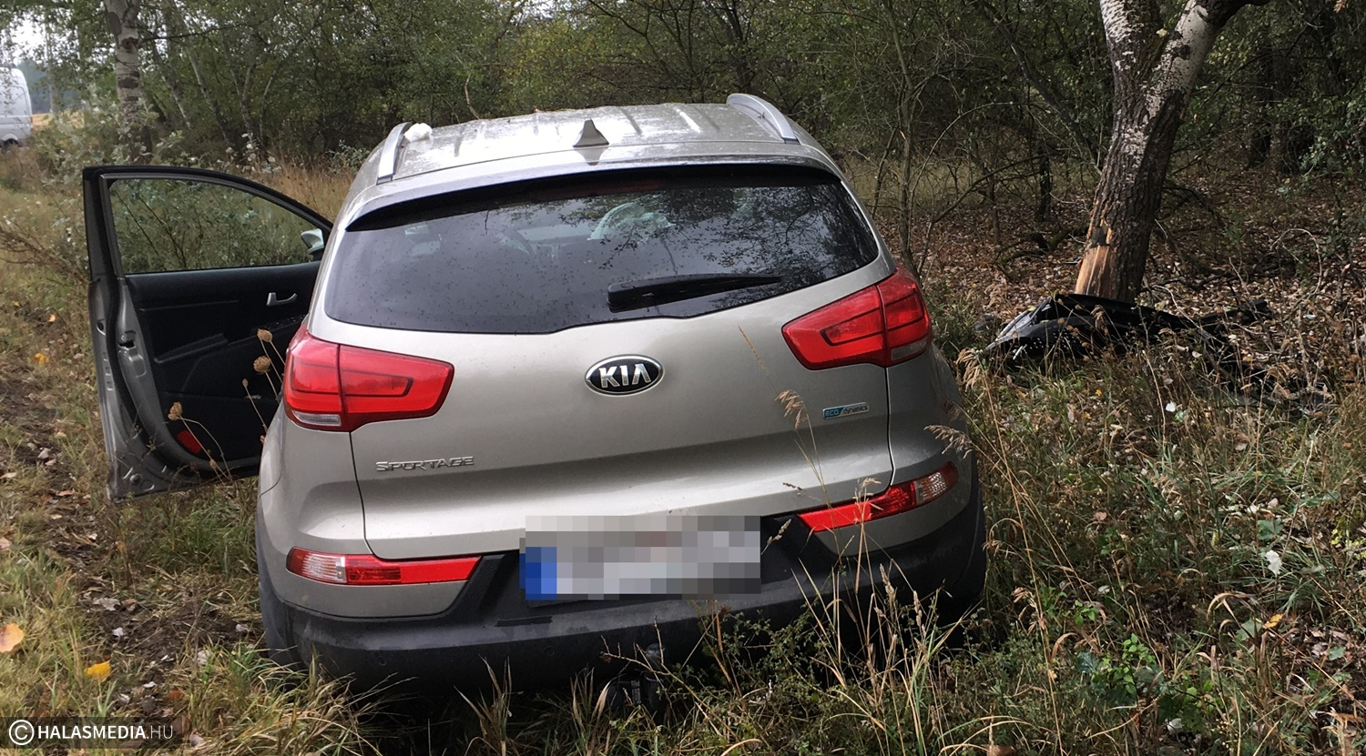 A gépjármű Zsana felől közlekedett Kiskunhalas felé, amikor egy jobbra ívelő kanyarban eddig ismeretlen okból letért az útról és fának ütközött. Közben kitört és maga alá gyűrt a jármű egy közlekedési táblát is. A légzsákok kinyíltak, a KIA Sportage eleje alaposan összetört. A gépkocsi sérült vezetőjét, aki a térdét fájlalta, a mentők a kiskunhalasi kórházba szállították. Az autóban jelentős kár keletkezett. Ugyanezen a helyen már több baleset történt, legutóbb július 23-án, akkor egy nő sérült meg súlyosan.