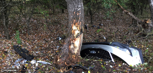 A Zsana és Kiskunhalas közötti úton eddig ismeretlen okból egy KIA terepjáró letért az útról és fának ütközött. A vezetőt mentő vitte kórházba - tudtuk meg a helyszínen.