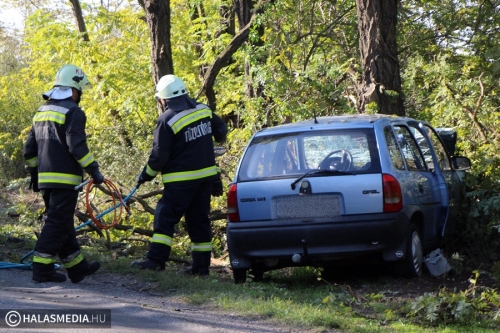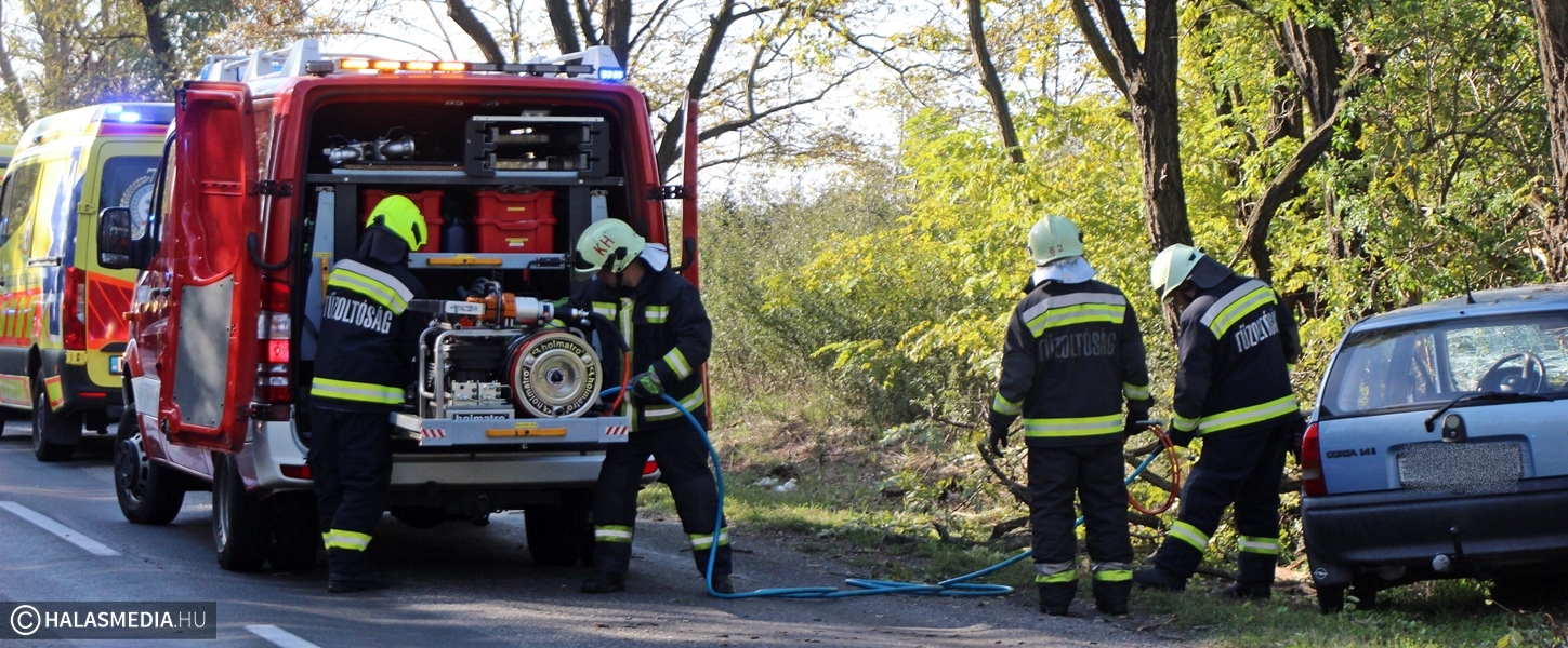 Három súlyos, életveszélyes sérültje van annak a balesetnek, amely szerdán délelőtt történt az 53-as főúton. Helyszíni információnk szerint egy Opel Corsa fának csapódott a 71-es kilométerszelvényben, Balotaszállás közelében. A szerencsétlenül járt járműben egy 68 éves nő és két unokája ült. Több autós is azonnal megállt, látva a balesetet és a sérültek segítségére sietett. Elsődleges hírek arról szóltak, hogy a sofőr az Opelbe szorult, ezért a kiskunhalasi tűzoltókat is riasztották. Három autóval érkeztek a helyszínre, ahol egy pedálvágó segítségével segítettek mentőknek kiemelni a vezetőt.