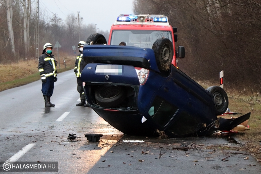 Feltehetően rosszul választotta meg a sebességét annak a Renault Clio-nak a sofőrje, amely lesodródott az 53-as főútról, nekiütközött egy fának, majd a tetejére borult. A járművet egy 20 év körüli fiatalember vezette, fejsérüléssel szállították a halasi kórházba. A műszaki mentést a kiskunhalasi tűzoltók végezték.