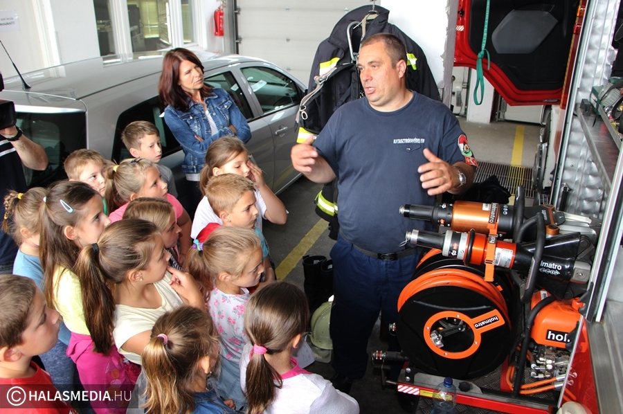 Amikor május közepén a Fazekas Mihály Általános Iskola másodikos diákjai ellátogattak a halasi mentőállomás nyílt napjára, akkor a gyerekek jelezték, szívesen megnéznék a helyi tűzoltóságot, rendőrséget is. Babud Jenő ezredesnek, a Kiskunhalasi Katasztrófavédelmi Kirendeltség vezetőjének, valamint Orbán Balázs alezredesnek, Kiskunhalas tűzoltóparancsnokának köszönhetően teljesült a lányok, fiúk kívánsága. Szerdán délelőtt megnyíltak számukra a szertárkapuk.