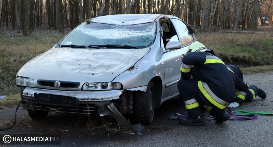 Megtudtuk tőle, hogy a megengedett sebességgel haladt és használta a biztonsági övet. A baleset után többen megálltak segíteni, értesítették a halasi tűzoltókat is. Ők állították kerekeire a Fiatot, majd áramtalanították a járművet. A sofőr figyelmeztetést kapott, a műszaki mentés idején félpályás útzár volt érvényben.