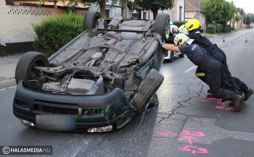 Balesethez riasztották a halasi mentőket, rendőröket és a tűzoltókat vasárnap hajnalban. Háromnegyed négy körül egy Volkswagen haladt a Szász Károly utcán a buszállomás irányából, amikor eddig tisztázatlan körülmények között padkának ütközött. Az autó kettétört egy fát, majd az oldalán csúszott több métert, majd a tetejére borult. A sofőr használta a biztonsági övet és önerőből el tudta hagyni a roncsot. Felmerült nála az ittasság gyanúja. Könnyebb sérülései miatt kivizsgálásra kórházba szállították a mentők. A helyszínelés és a műszaki mentés idejére lezárták a Szász Károly utca érintett szakaszát. A tűzoltók azután tudták áramtalanítani a Volkswagent, miután a kerekeire állították. A baleset pontos körülményeit a Kiskunhalasi Rendőrkapitányság közlekedésrendészete vizsgálja.
