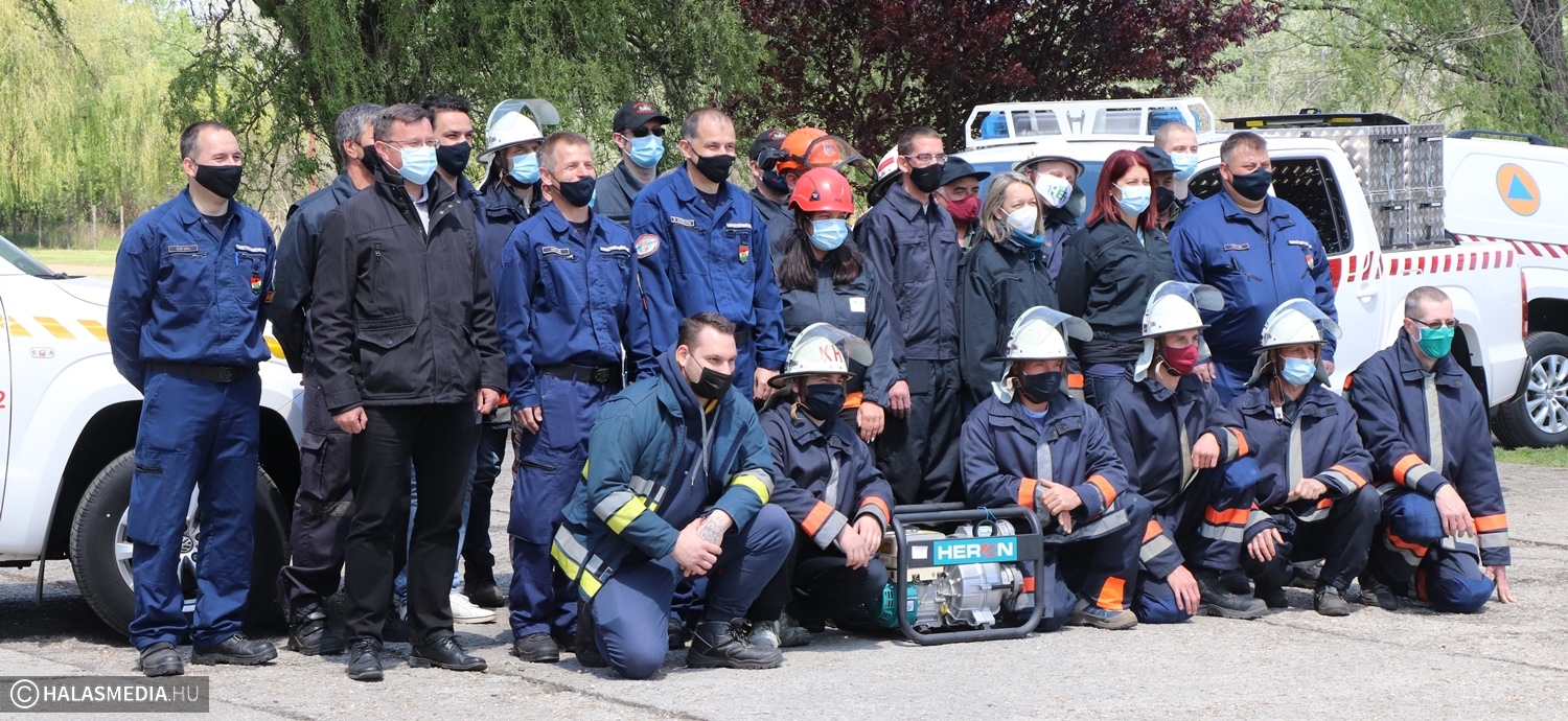 A gyakorlat részleteit Babud Jenő ezredes, a Kiskunhalasi Katasztrófavédelmi Kirendeltség vezetője ismertette. Első feladat egy bázis kiépítése volt, amely hosszan elhúzódó káreset felszámolása során a hátteret biztosítaná a csapatnak. Ezt követően bemutatták azokat a speciális felszereltségű járműveket, amelyet az elmúlt időszakban érkeztek Kiskunhalasra. Mint arról már beszámoltunk, az egyik terepjárót már éles helyzetben is bevetették. A tavaly augusztusban érkezett járművel együtt a jövőben három VW Amarok áll majd a csoport rendelkezésére. Kettő kisebb avartüzek oltására tökéletesen alkalmas, egy pedig a viharkárok felszámolásakor bevethető. Kiderült az is, hogy az egyik terepjáró Tompára kerül, a személyzet kiképzése hamarosan megkezdődik. Erre azért van szükség, mert a településre és környékére idő, mire leér egy hivatásos tűzoltóegység, az Amarok pedig alkalmas elsődleges beavatkozásra.